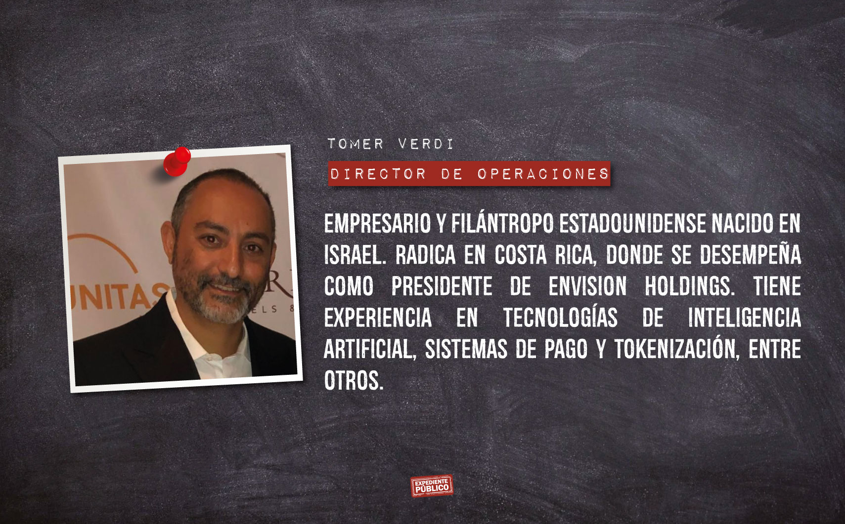 Otro de los socios en DelNorte, según la página de la empresa, es Tomer Vardi que se describe como «un empresario y filántropo estadounidense nacido en Israel que ahora está radicado en Costa Rica, donde se desempeña como presidente de Envision Holdings».