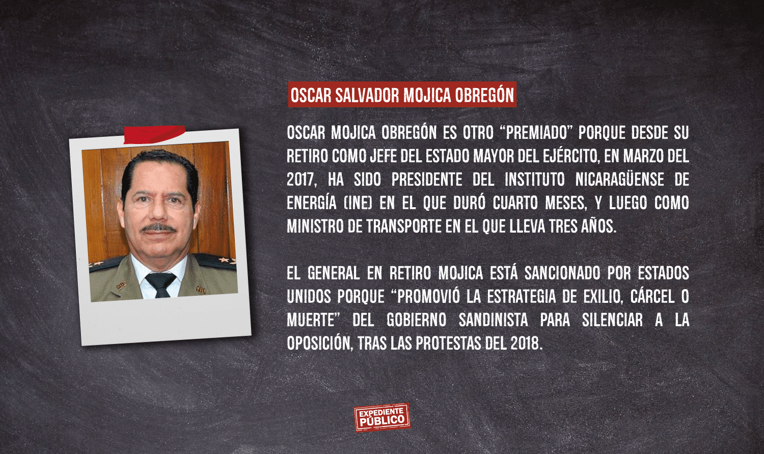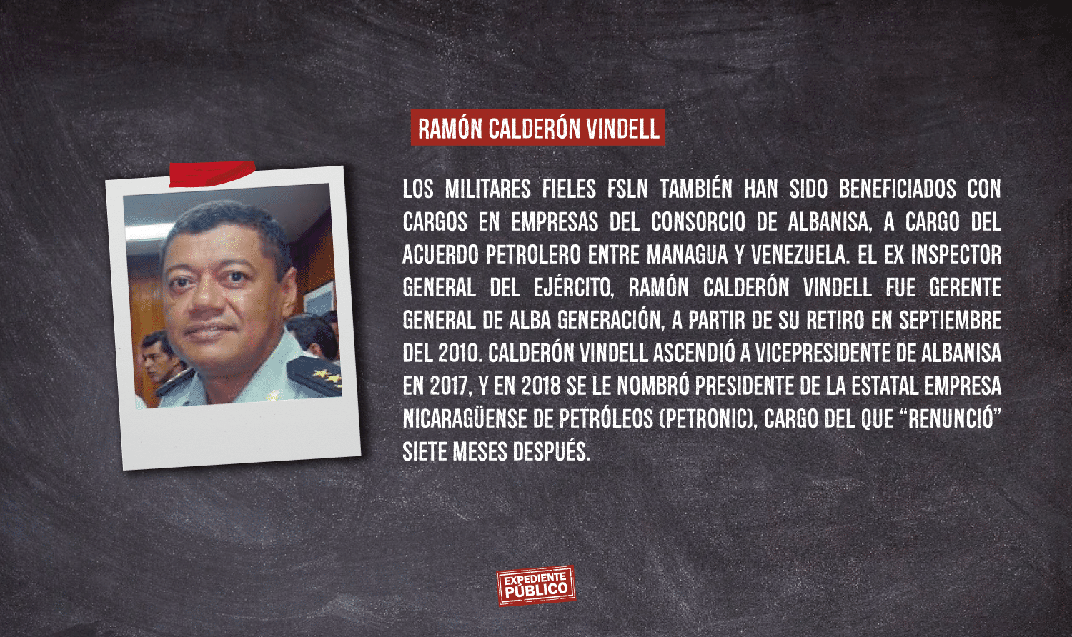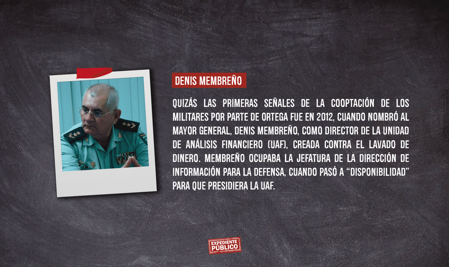 La investigación de Expediente Público sostiene que Ortega ha cooptado a los militares hacia su proyecto político-partidario premiando a los fieles con prebendas económicas, liderazgos en ámbitos no propiamente militares, impunidad y otros privilegios que se extienden a sus familias.