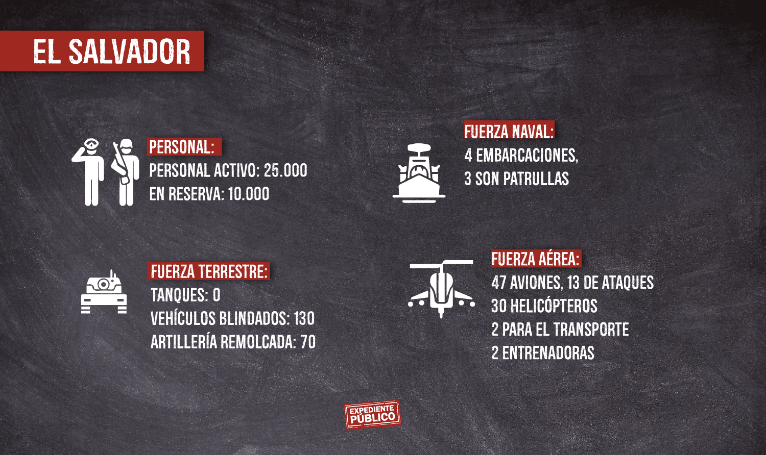 En El Salvador el Ministerio de Defensa Nacional también facilita a los ciudadanos los procesos de compra detallando objeto, montos, proveedor, forma de contratación, entre otros. Esa información está accesible en el sitio www.transparencia.gob.sv, donde los ministerios e instituciones estatales salvadoreñas, incluidos los militares, están obligados a rendir cuentas del dinero público.
