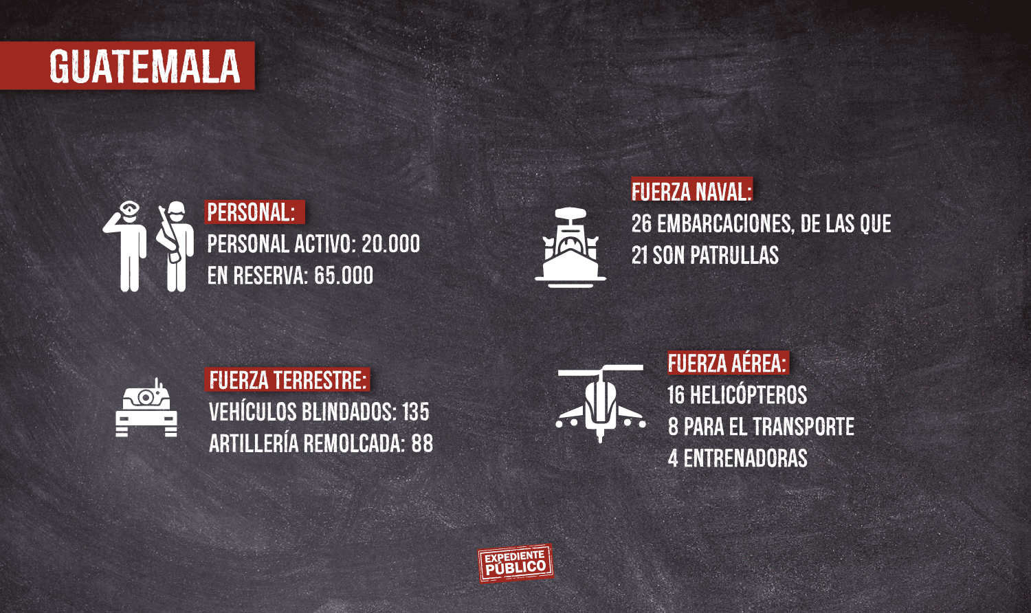 En Guatemala, las compras se detallan en el sitio web www.mindef.mil.gt, del Ministerio de Defensa, en la sección de la Dirección General de Compras y Adquisiciones donde hay acceso a los documentos de las licitaciones u otros procesos de adquisición, así como a las adjudicaciones, contratos o la declaración de desierto y sus razones.