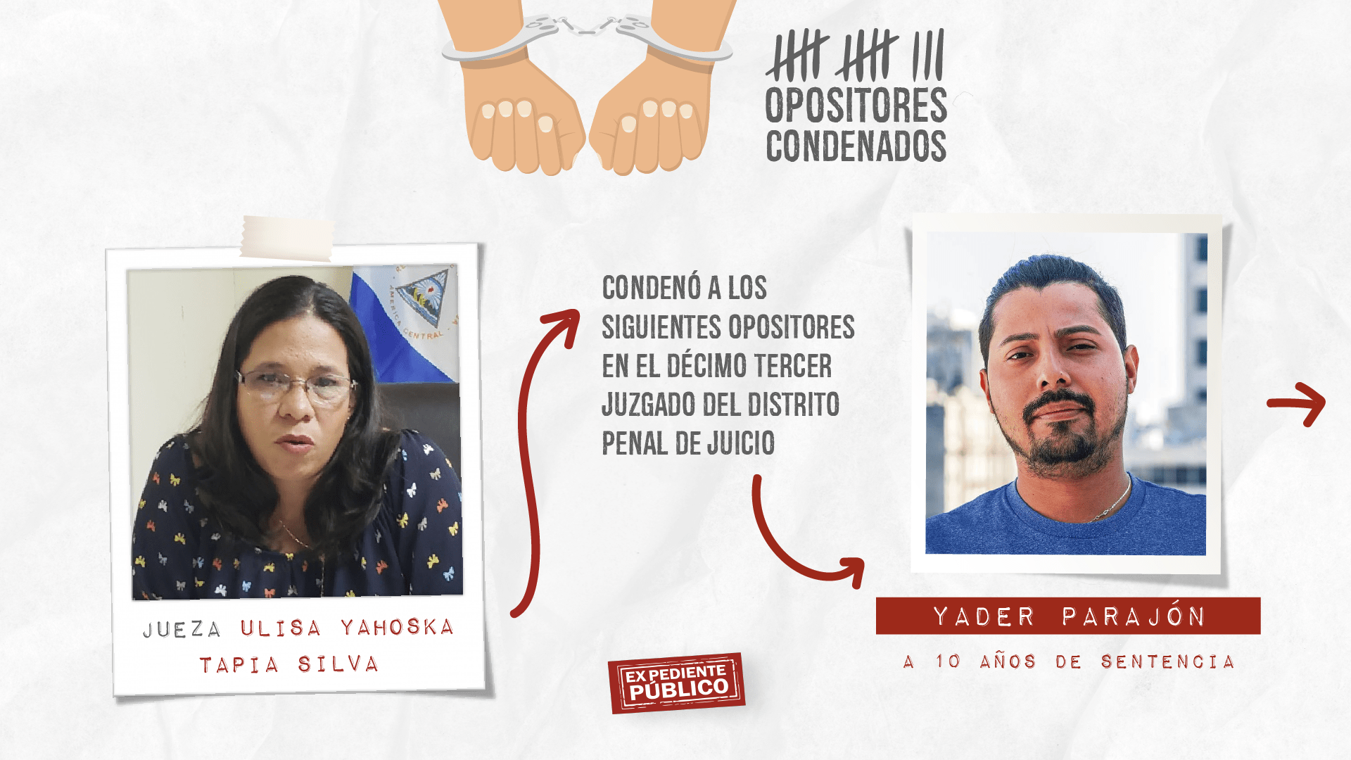 Los presos políticos Yáder Parajón y Yasser Muhamad Vado, fueron los primeros en ser sometidos a la justicia de Ortega el 1 de febrero cuando se les condenó a 10 años y 13 años, respectivamente.