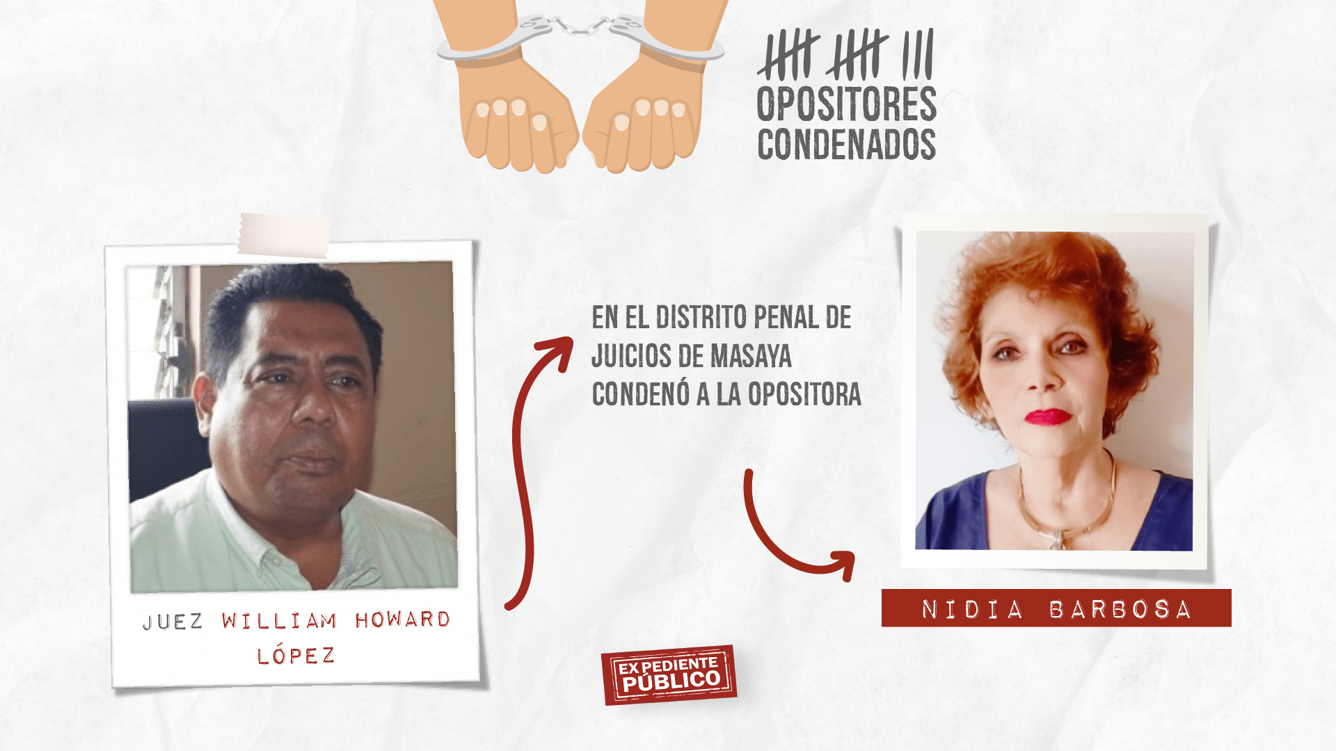 En la jornada de este viernes 11 de febrero el juez de Distrito Penal de Juicios de Masaya, William Howard López dictó un fallo de culpabilidad en contra de la opositora Nidia Lorena Barbosa por igual delito de «menoscabo a la integridad nacional y propagación de noticia falsa».