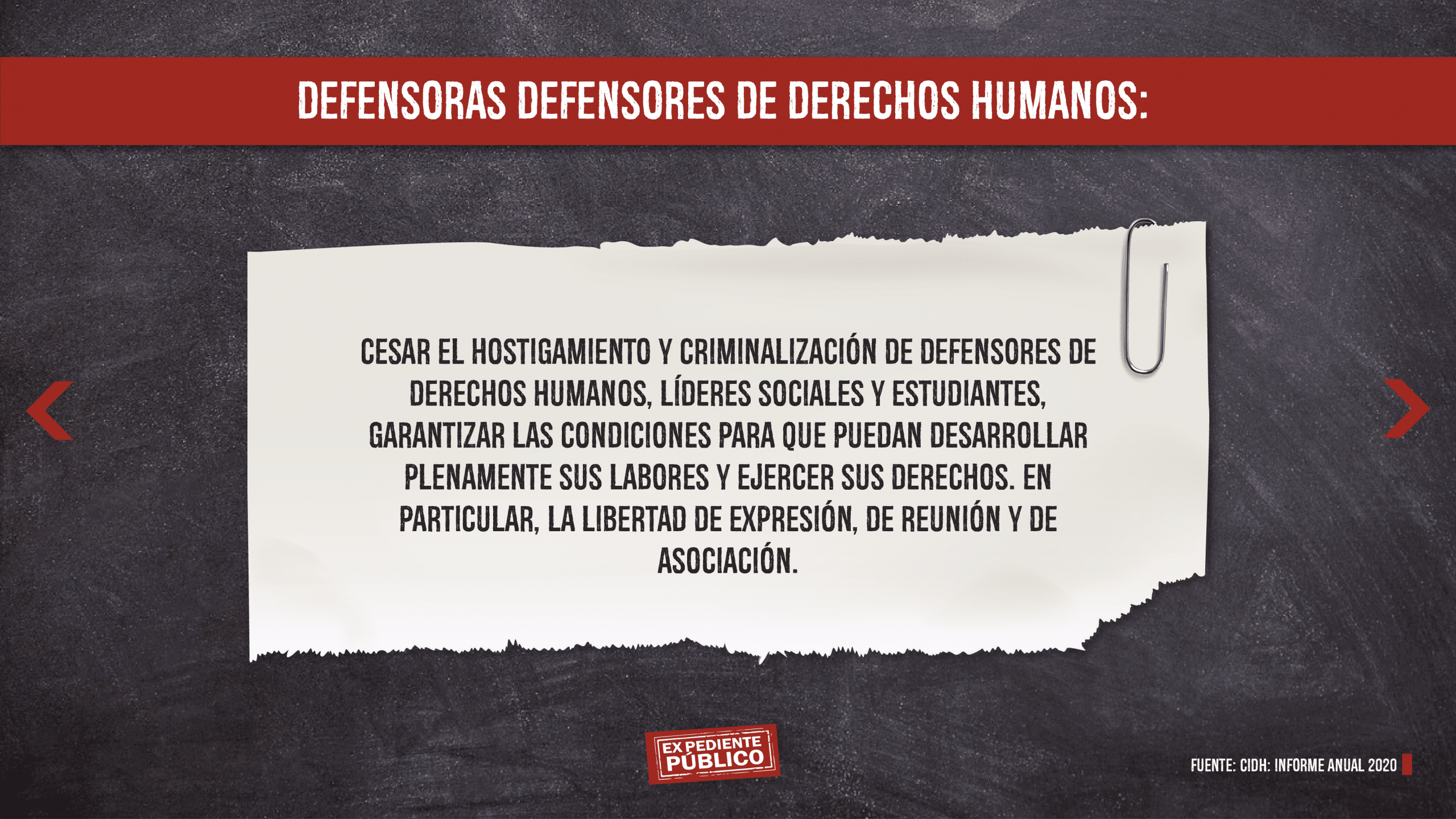 En tanto, la Relatoría Especial Relatoría Especial para la Libertad de Expresión (RELE) y la CIDH, documentó que durante el año 2020 se incrementó las agresiones contra periodistas y medios de comunicación.