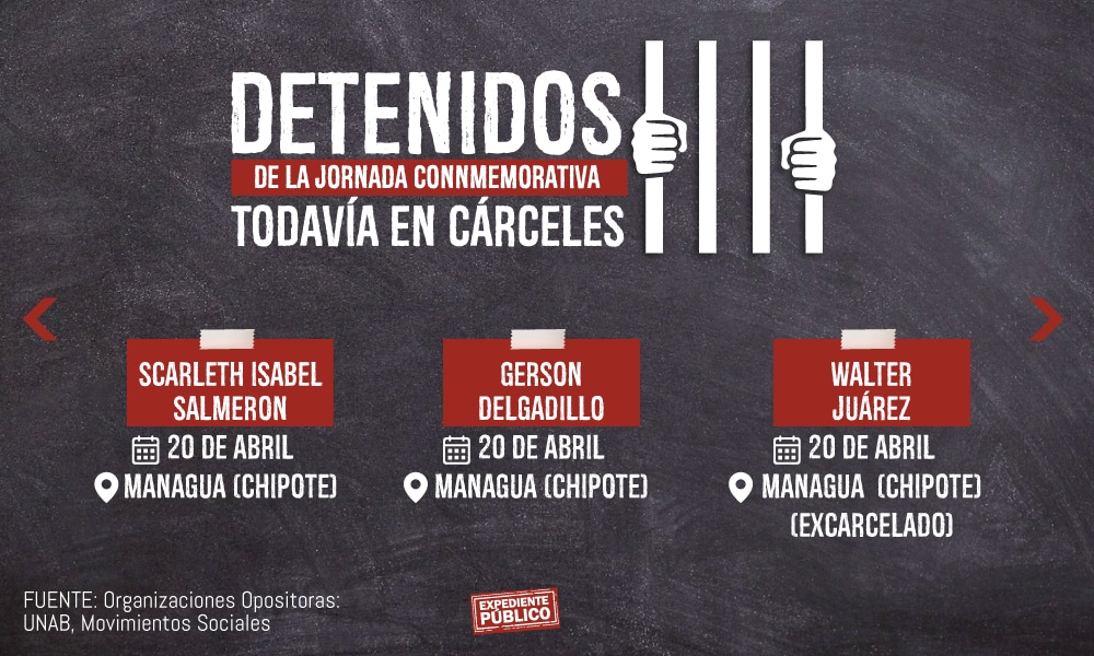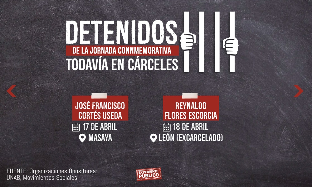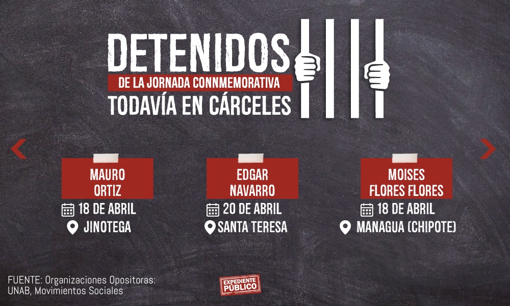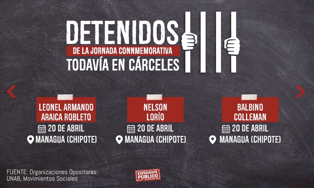 También fue denunciada la detención de Leonel Armando Araica Robleto, del Movimiento Campesino, y Julio Godoy de la Unidad Nacional Azul y Blanco (UNAB), y otros ocho ciudadanos de organizaciones opositoras al gobierno de Daniel Ortega y Rosario Murillo.