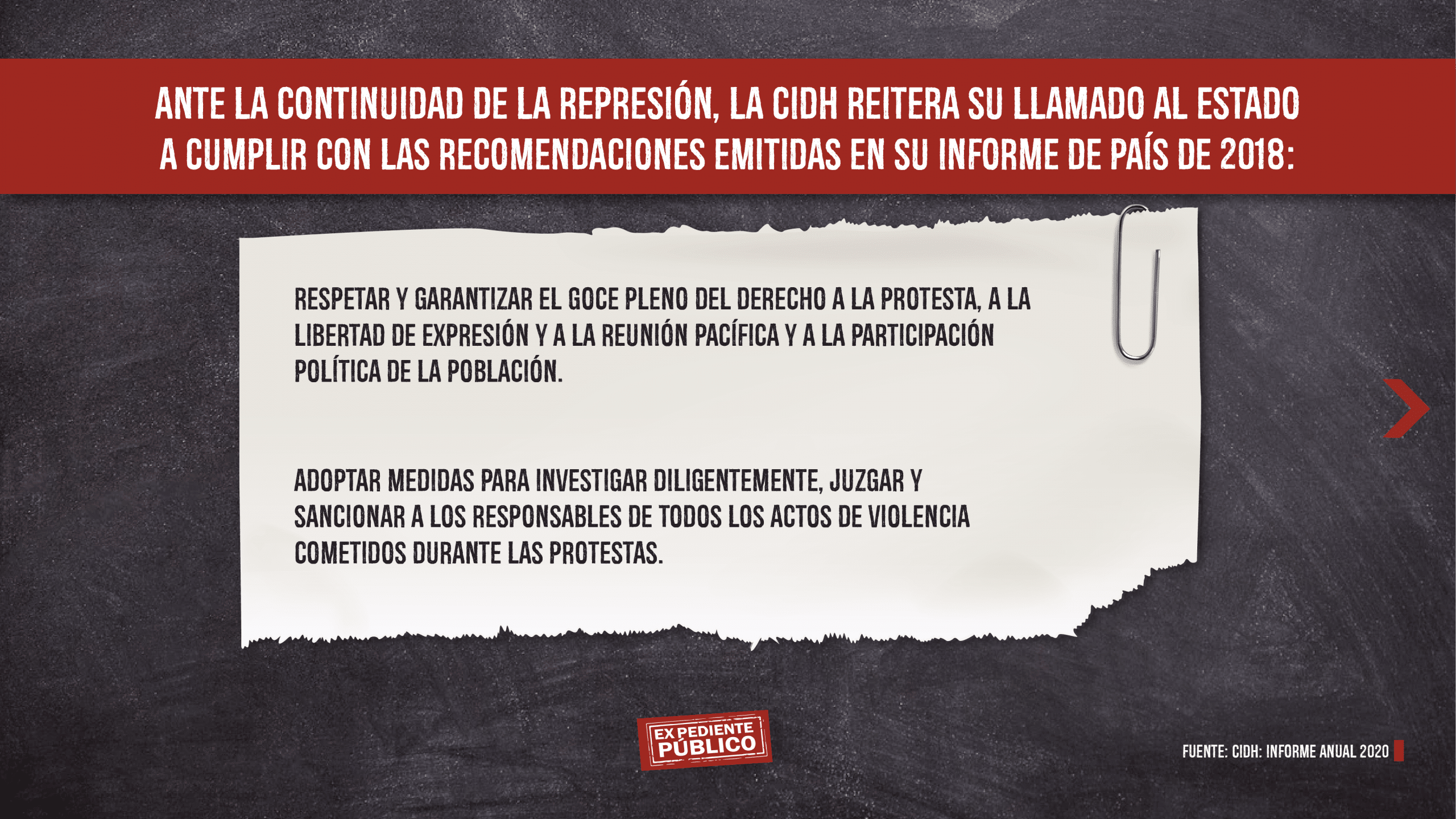 Ante la continuidad de la represión, la CIDH reitera su llamado al Estado a cumplir con las recomendaciones emitidas en sus pasados Informe desde 2018 a 2021, y que continúan en incumplimiento.