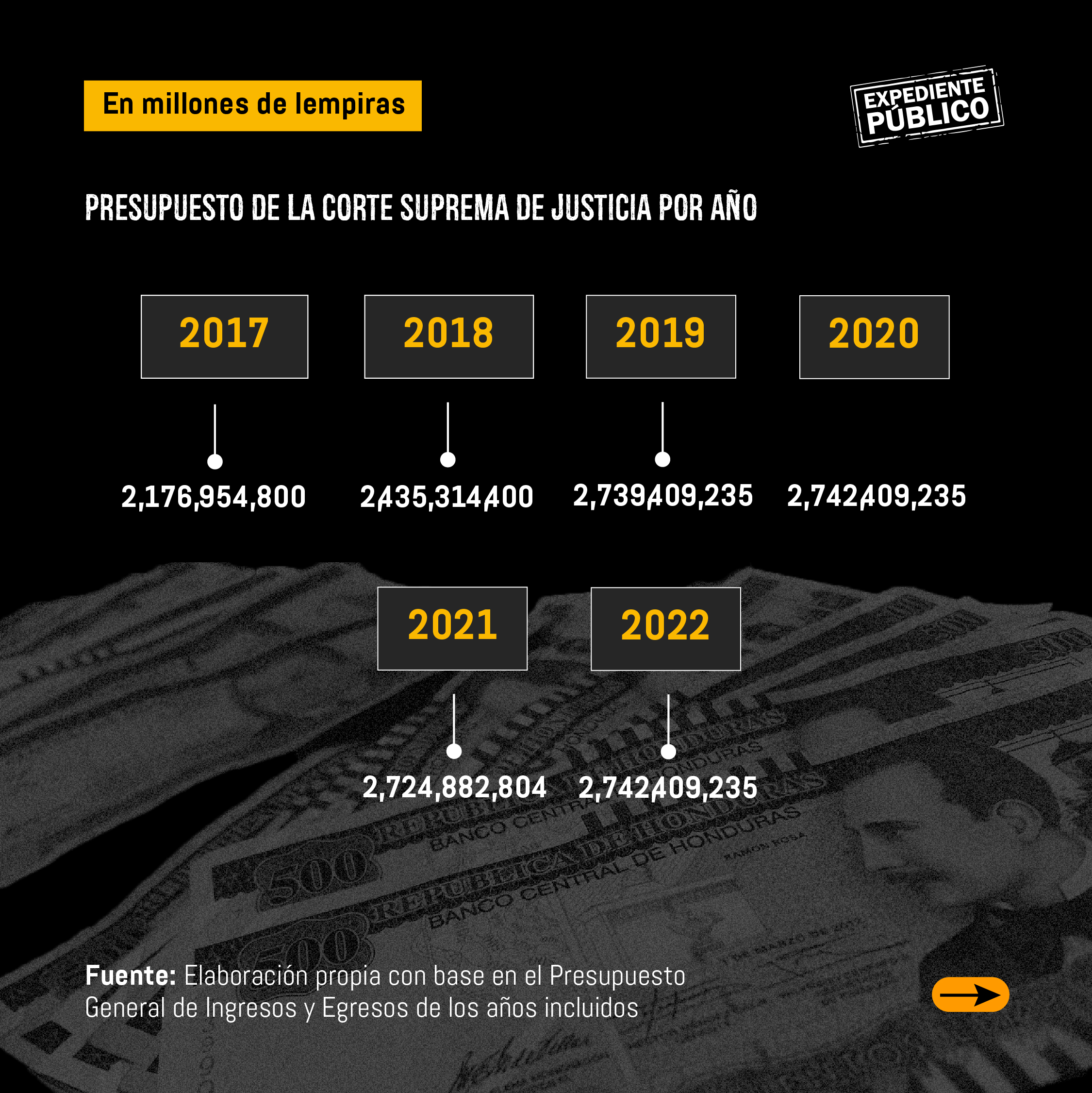 Para el caso, el presupuesto del Ministerio Público, de alrededor de 2 mil millones de lempiras (unos $82 millones), se ha venido replicando en los últimos dos a tres años, y en su mayoría se va en sueldos y salarios y poco en el fortalecimiento y la contratación de personal.