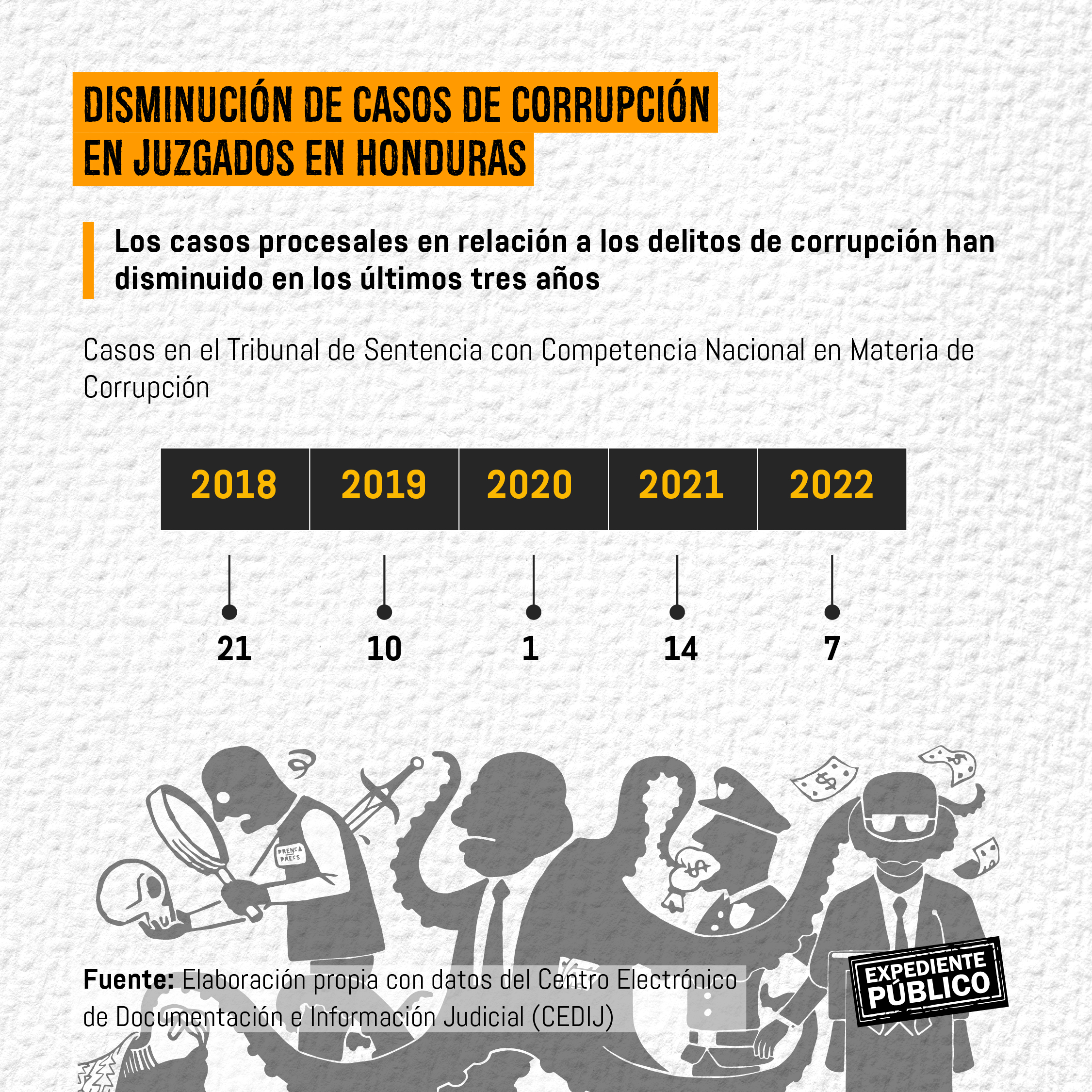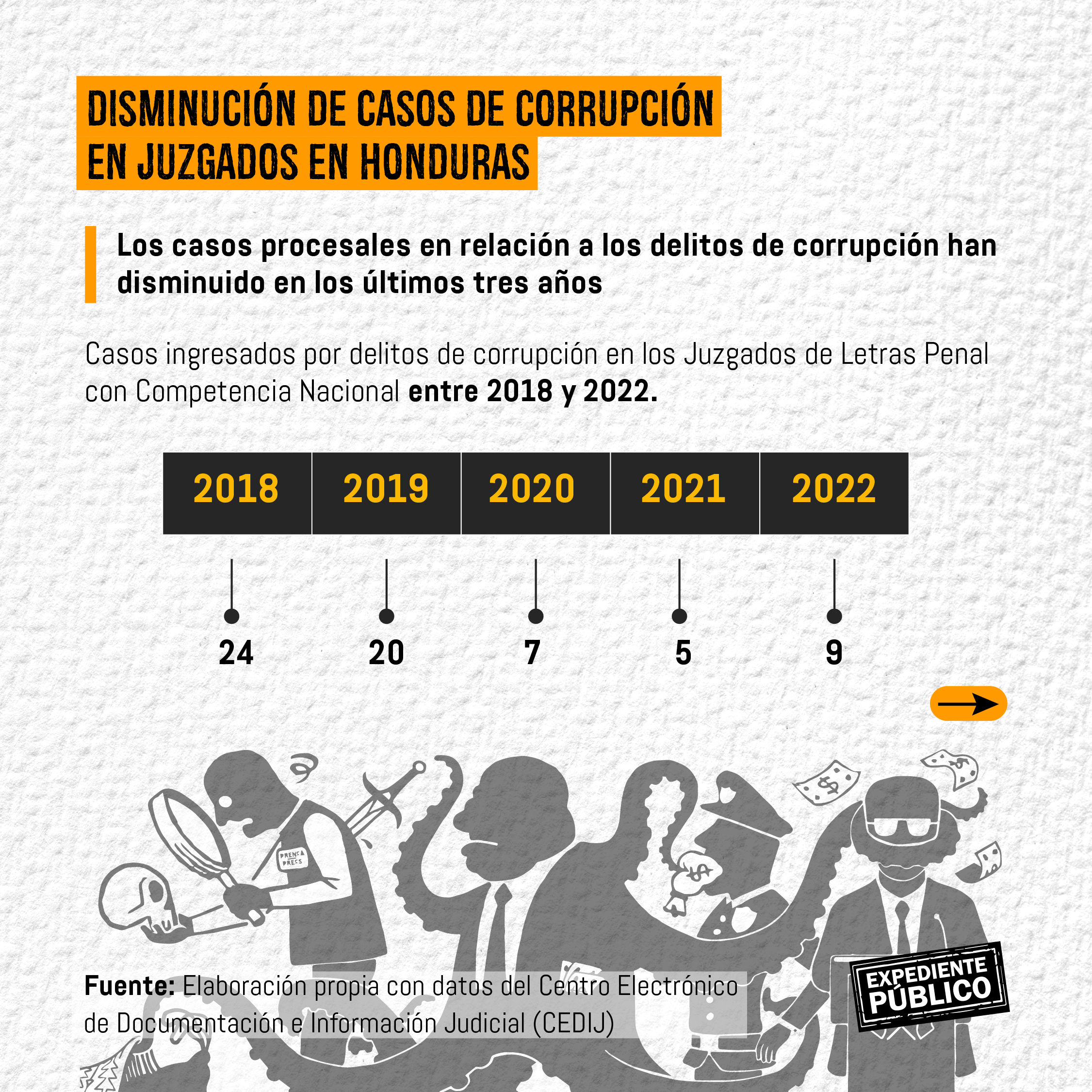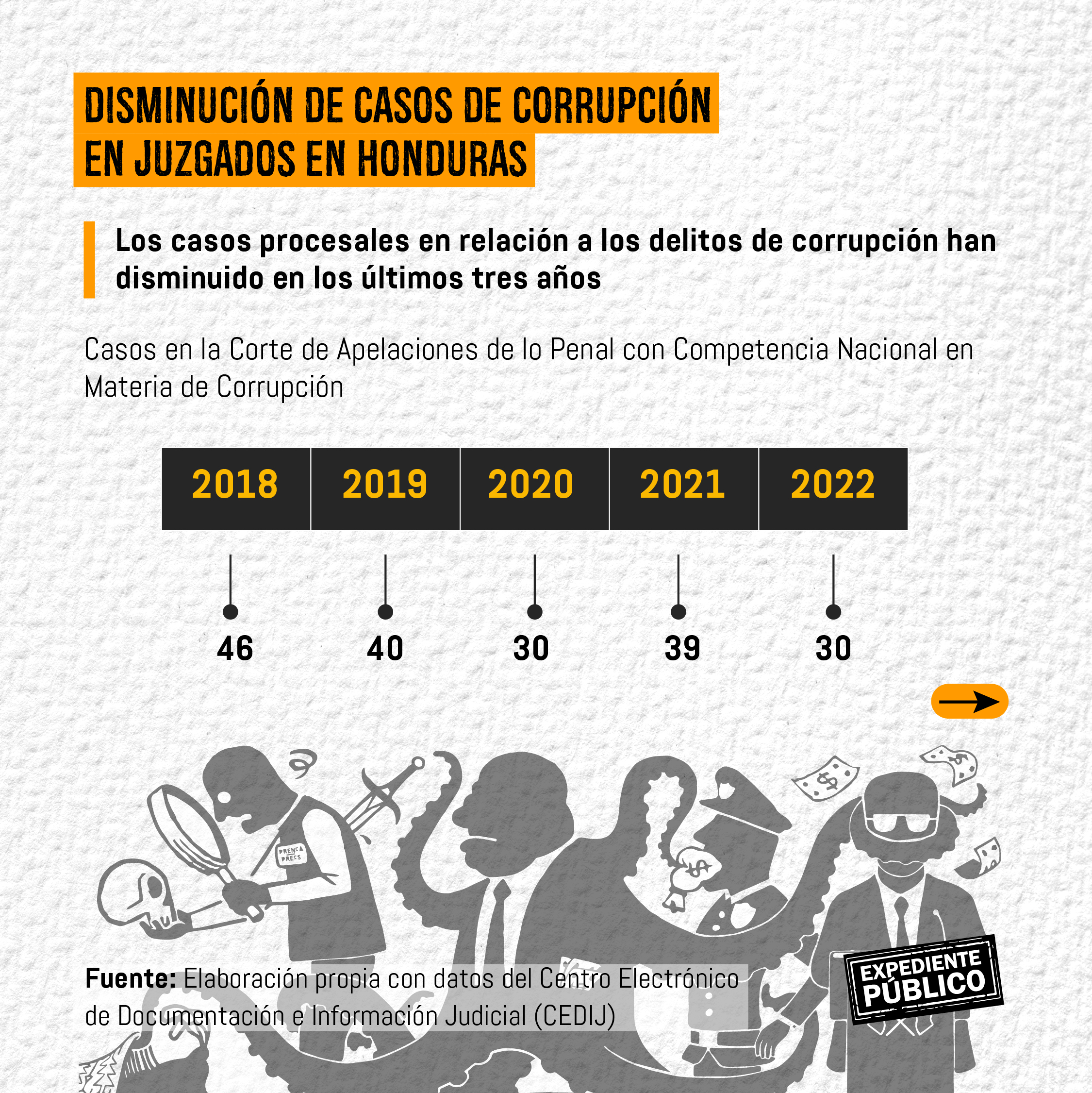 En su decisión, la Corte Suprema de Justicia argumenta la escasa judicialización de casos de corrupción, que en el período 2018-2023 representaron sólo el 3% de los ingresos totales que recibieron los juzgados de Letras en Materia de Corrupción, Extorsión y Competencia Nacional, mientras que los delitos por extorsión alcanzaron el 80%.
