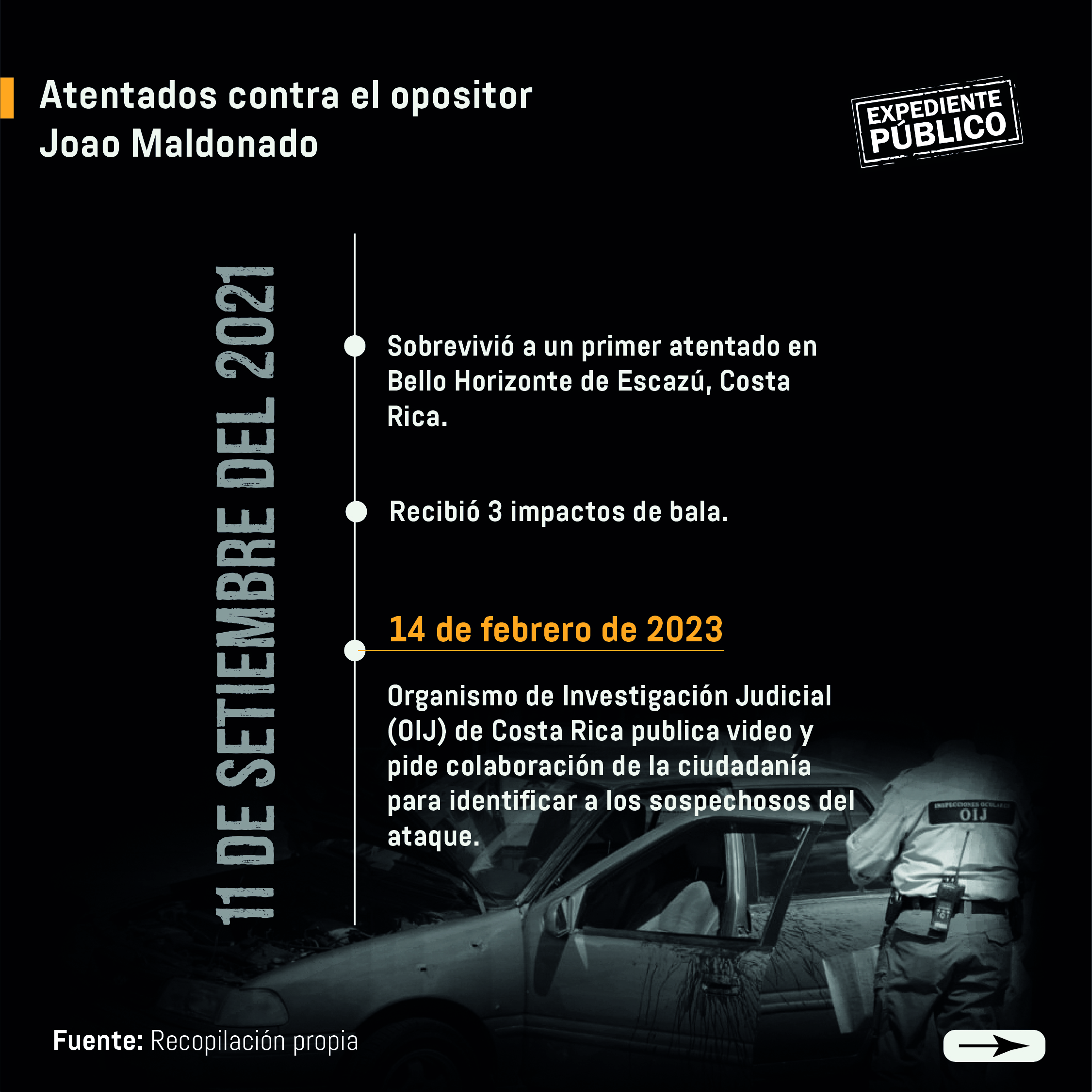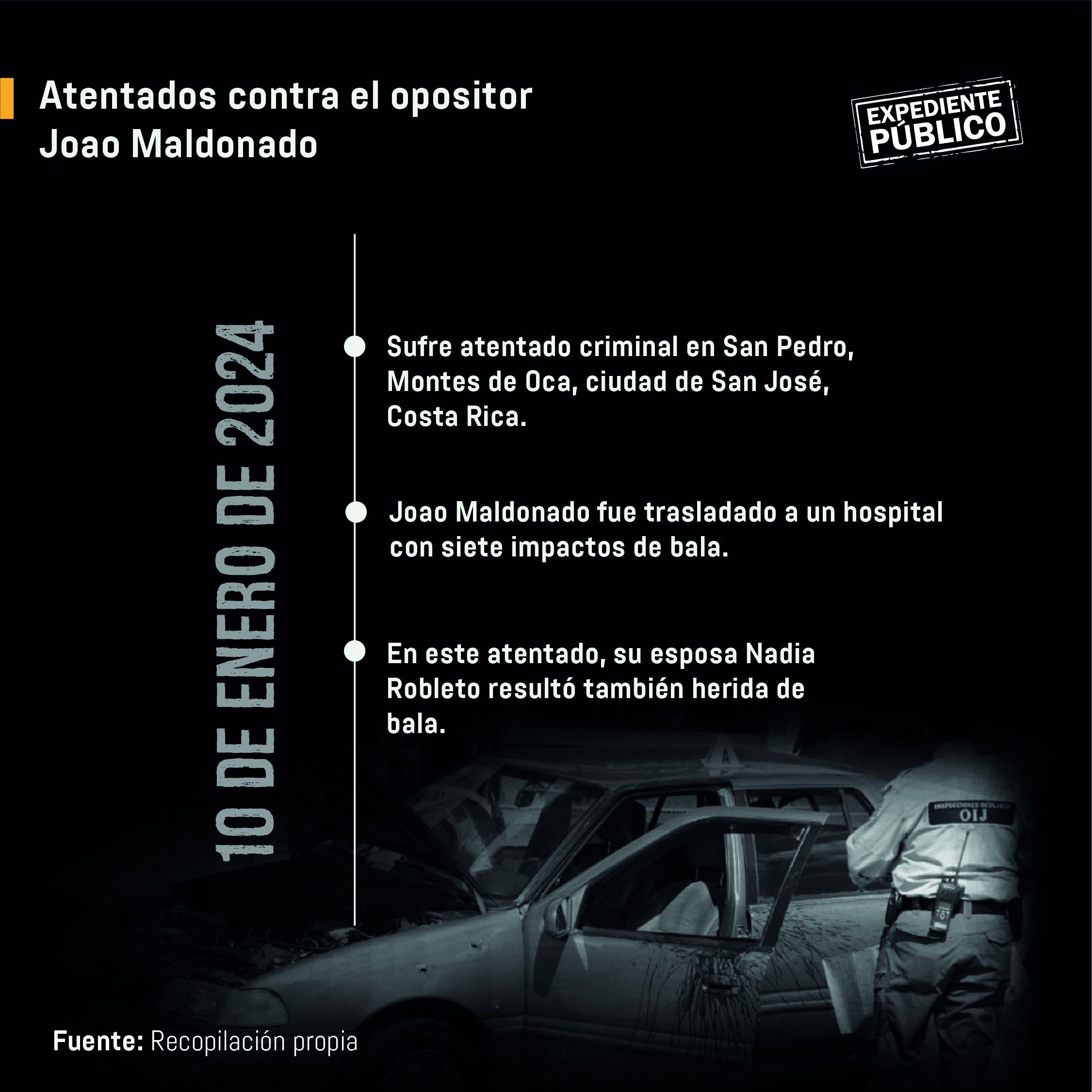 Joao, ahora 34 años, ha sufrido dos atentados en Costa Rica, el último el 10 de enero de 2024, con su pareja Nadia Robleto.