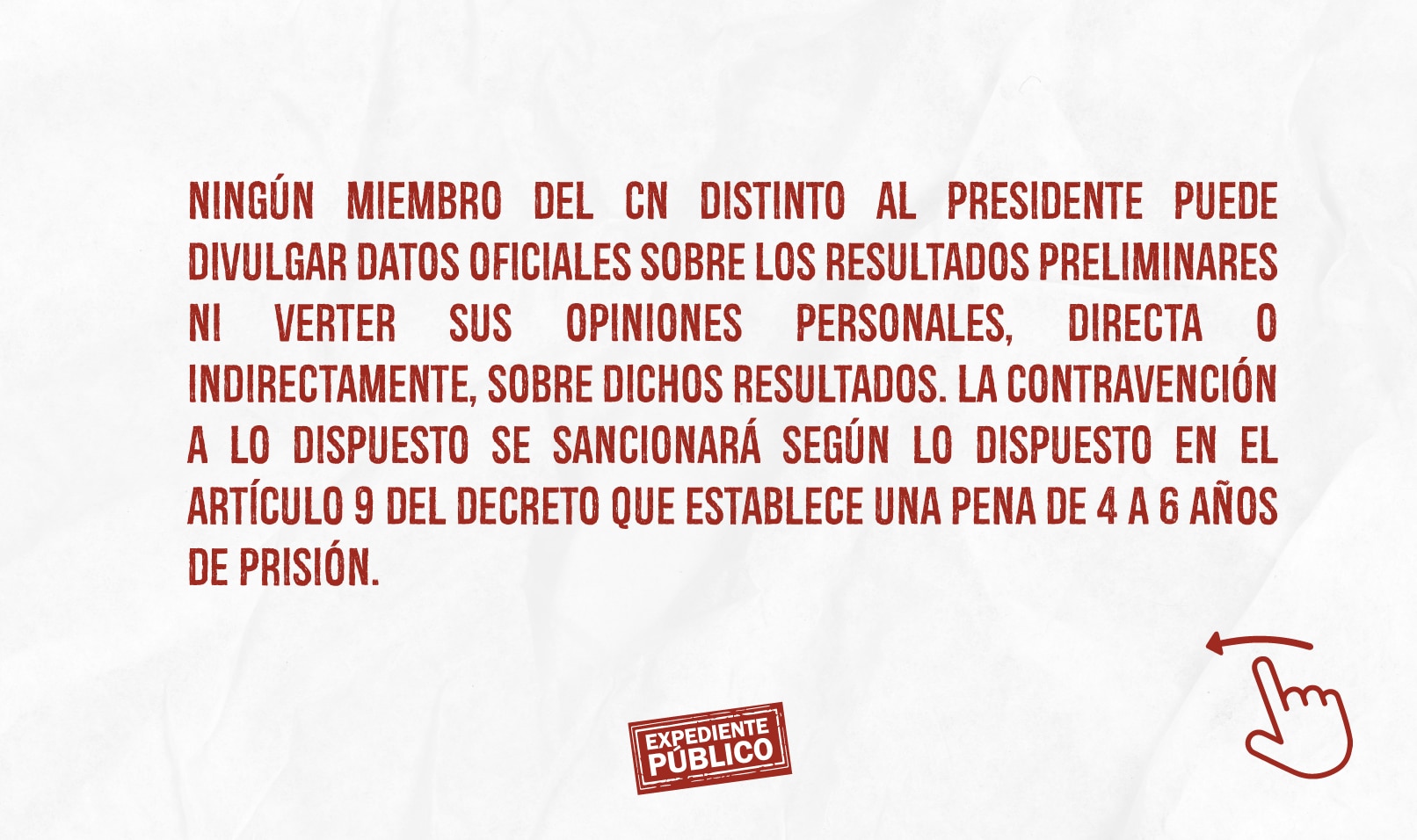 Una de las reformas propuestas establece la prohibición de difundir, publicar o comentar de forma directa o indirecta resultados totales o parciales el día de las elecciones hasta después de cuatro horas del cierre de la votación. Esta prohibición incluye a los consejeros del CNE, excepto al presidente, un cargo que es rotativo y que a partir de septiembre recaerá en el oficialista, Kelvin Aguirre, lo que no es una casualidad ya que desde hace varios procesos electorales el Partido Nacional se ha asegurado de que su representante esté al mando de la institución al momento de las votaciones generales.