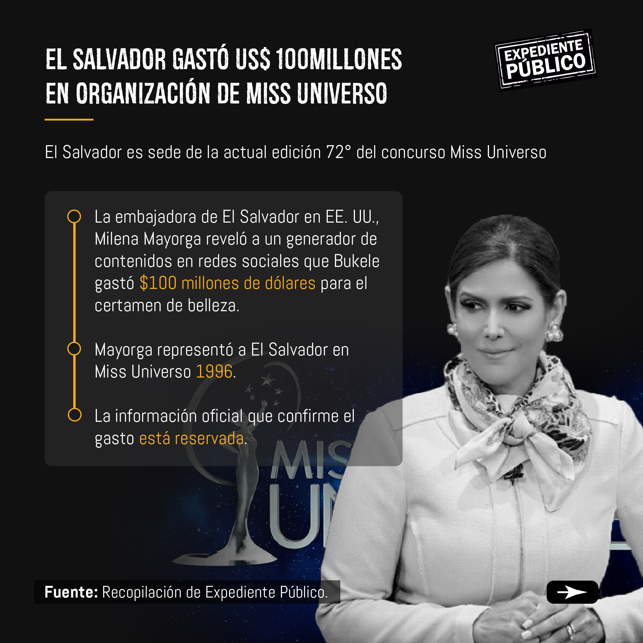 * El presidente de El Salvador, Nayib Bukele, usó US$103 millones para organizar Miss Universo a costa de recortar fondos a Educación, Salud y Seguridad Pública.
