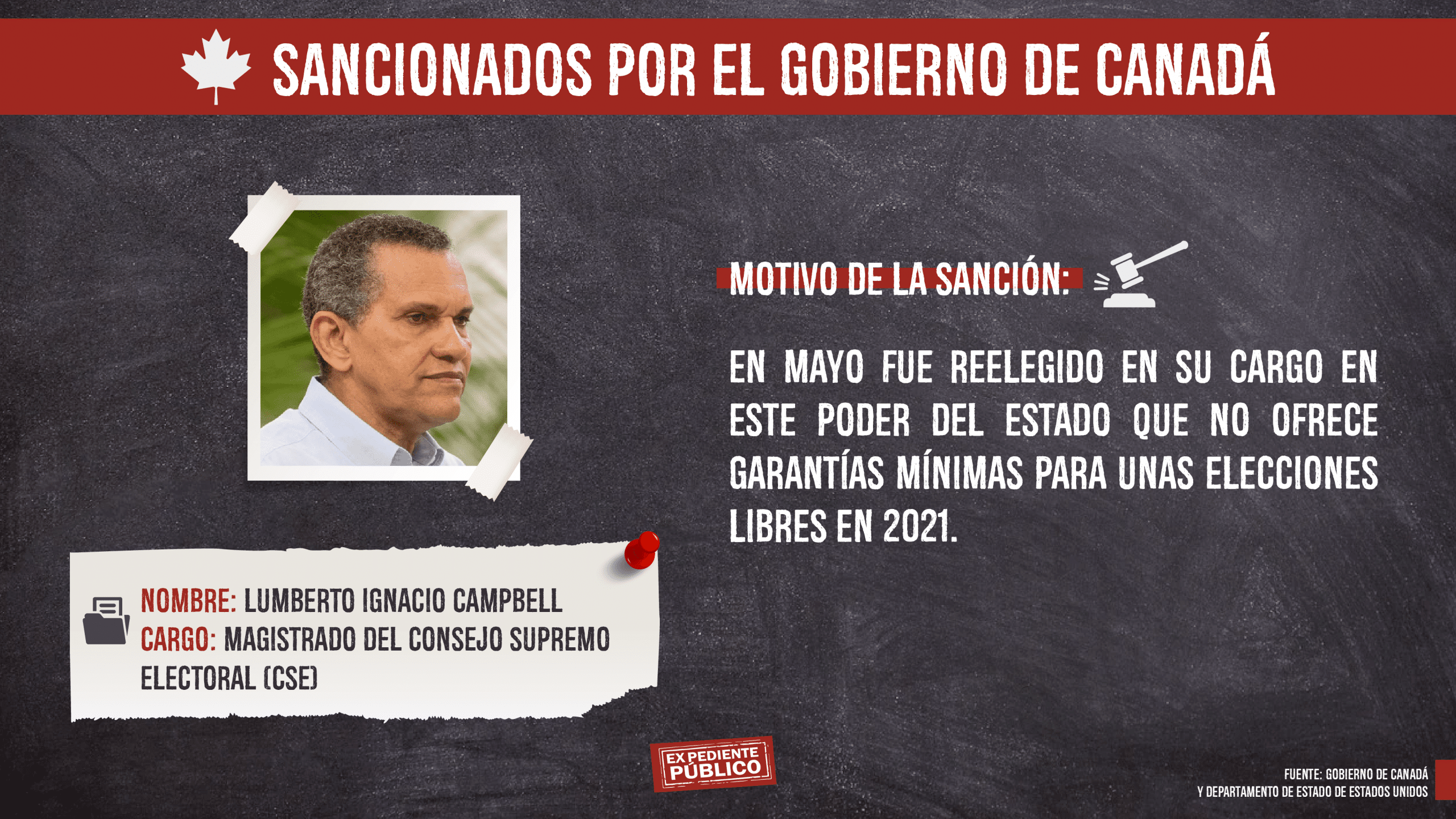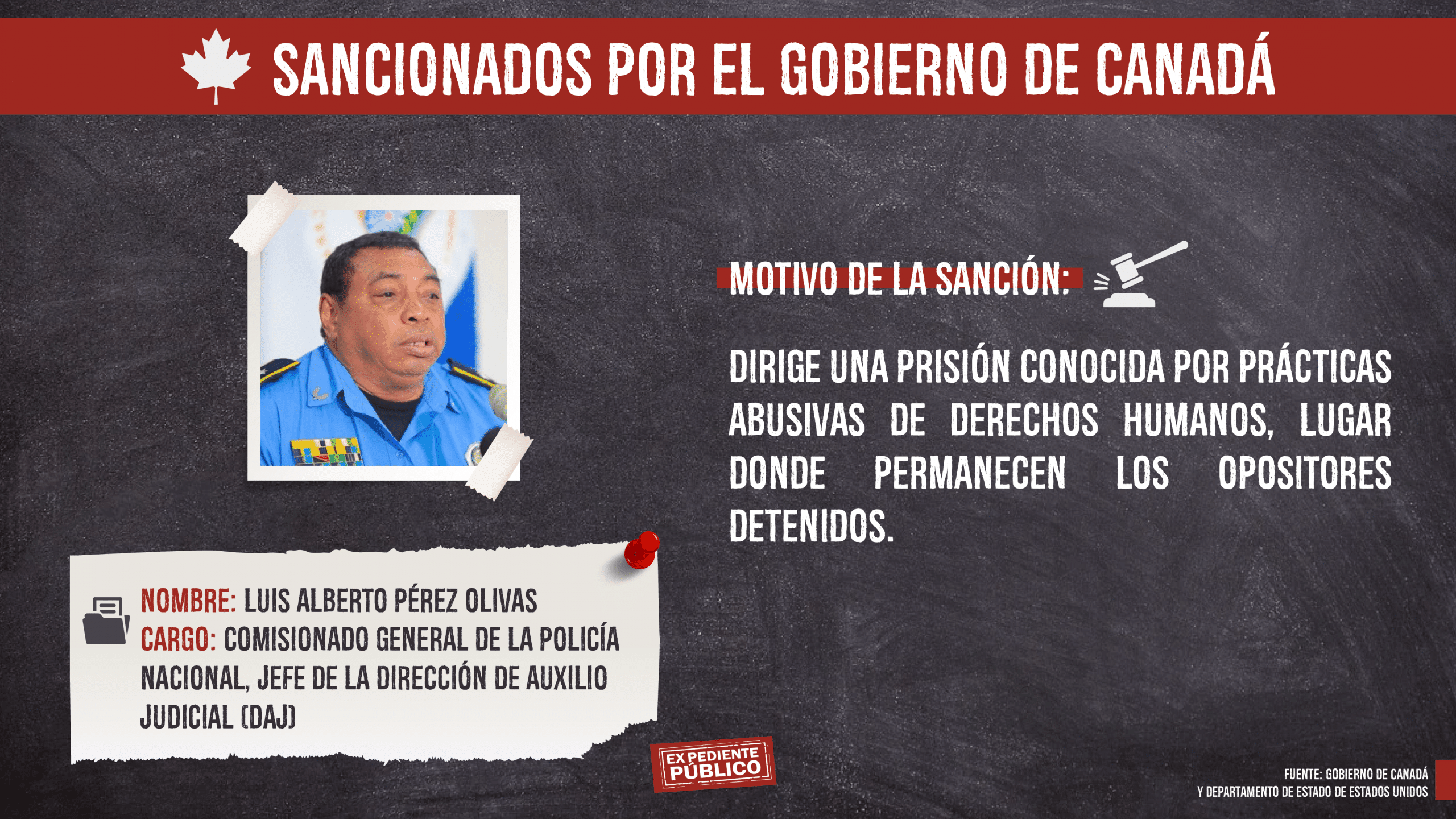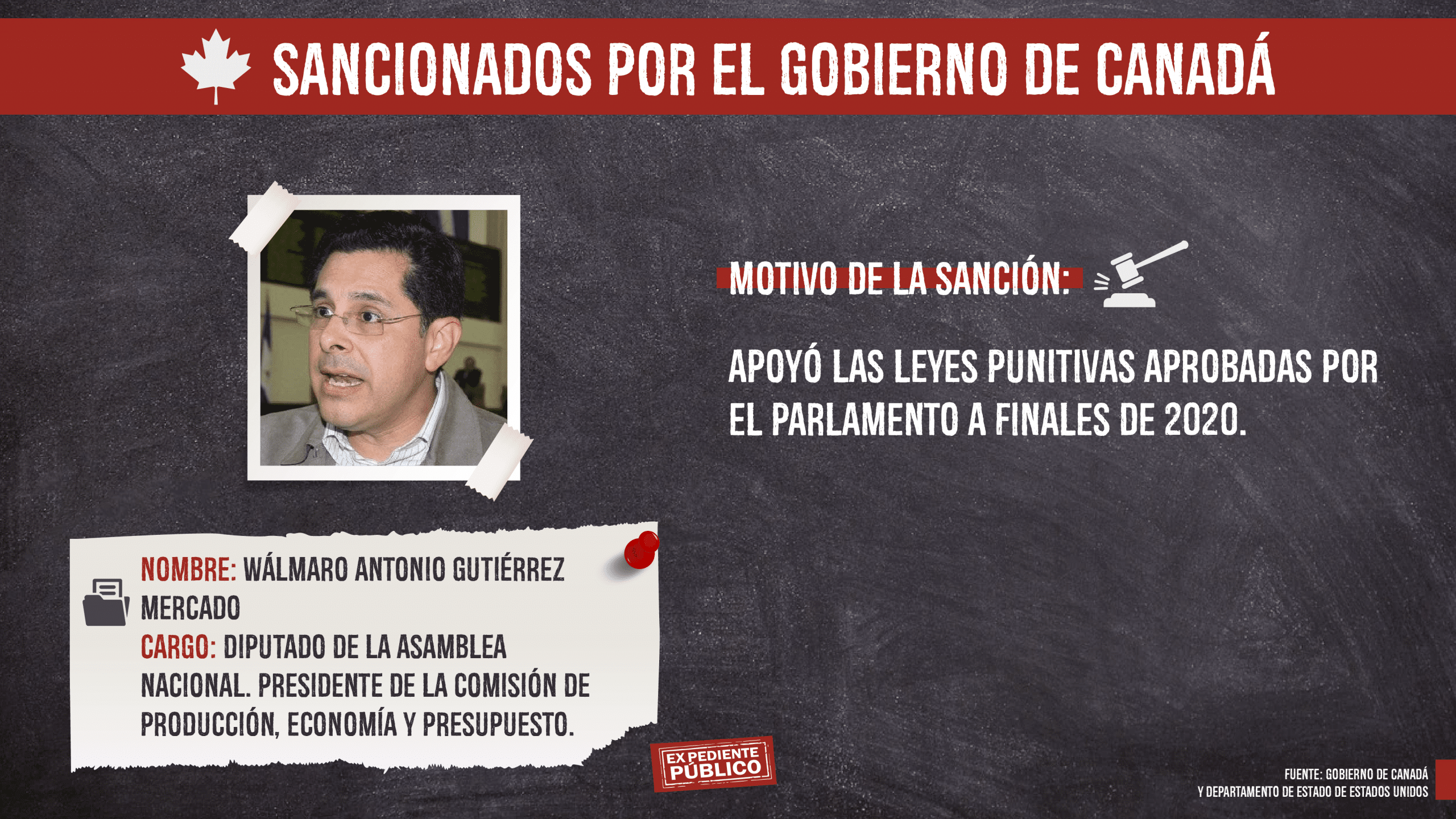 Una nueva lista de 15 funcionarios nicaragüenses sancionados por el Gobierno de Canadá este 14 de julio 2021, se suma a otros nueve que estaban en la lista negra de ese país desde el 23 de junio de 2019.