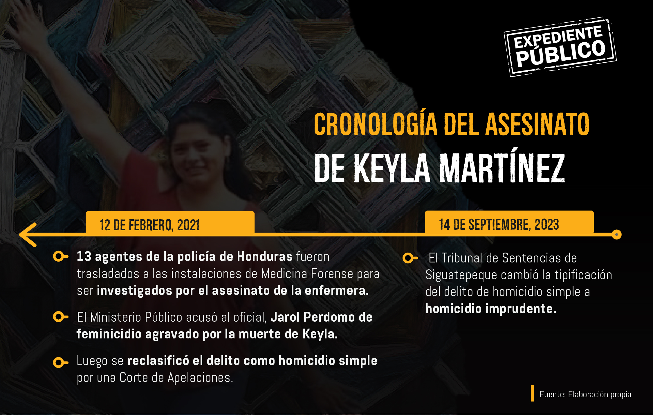 *Familia y defensoras de derechos humanos afirman que cambio de tipificación de delito de feminicidio agravado a homicidio impudente se realizó con el propósito de reducir la pena del único juzgado por el caso Keyla Martínez, un oficial de la Policía.