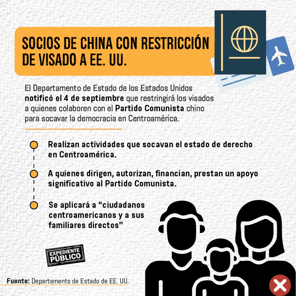 La delegación viajó a China después de que el Departamento de Estado de los EE. UU. notificara que restringirá los visados a los “ciudadanos centroamericanos y a sus familiares directos” que actúen intencionadamente a favor del PCCh y “amenacen la estabilidad de nuestra región”.