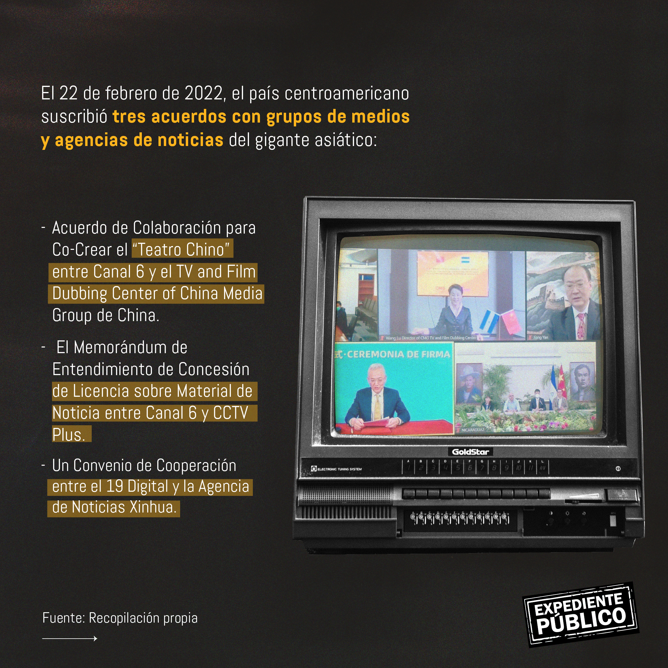Los medios orteguistas publican contenidos de medios estatales chinos y según el reporte del centro de investigación académica habría recibido apoyo financiero de personas o entidades relacionadas con la RPC.