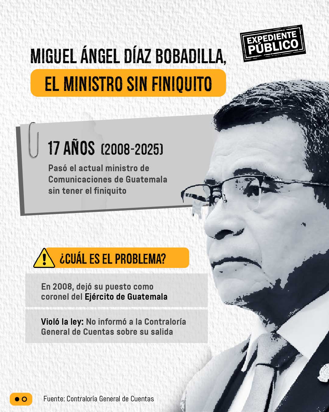 * Miguel Díaz Bobadilla asumió como ministro de Comunicaciones sin el finiquito obligatorio, requisito que debía presentar antes de la juramentación con el presidente Bernardo Arévalo.