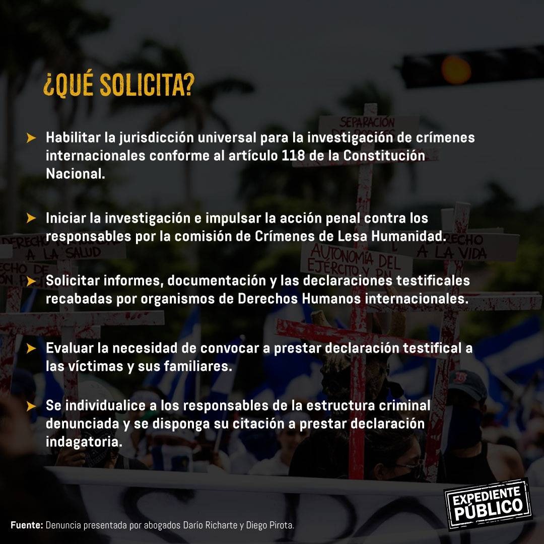 La exembajadora de Argentina en la Organización de Estados Americanos (OEA), Paula Bertol, en declaraciones a Expediente Público calificó la invitación a Ortega, Maduro y Díaz Canel como un mensaje «patético» y «deplorable» del presidente Fernández. «Ortega no se va a animar a venir a la Argentina debido a la causa que se inició donde se abre la jurisdicción universal para perseguir los crímenes de lesa humanidad que se vienen cometiendo sistemáticamente en Nicaragua», dijo.