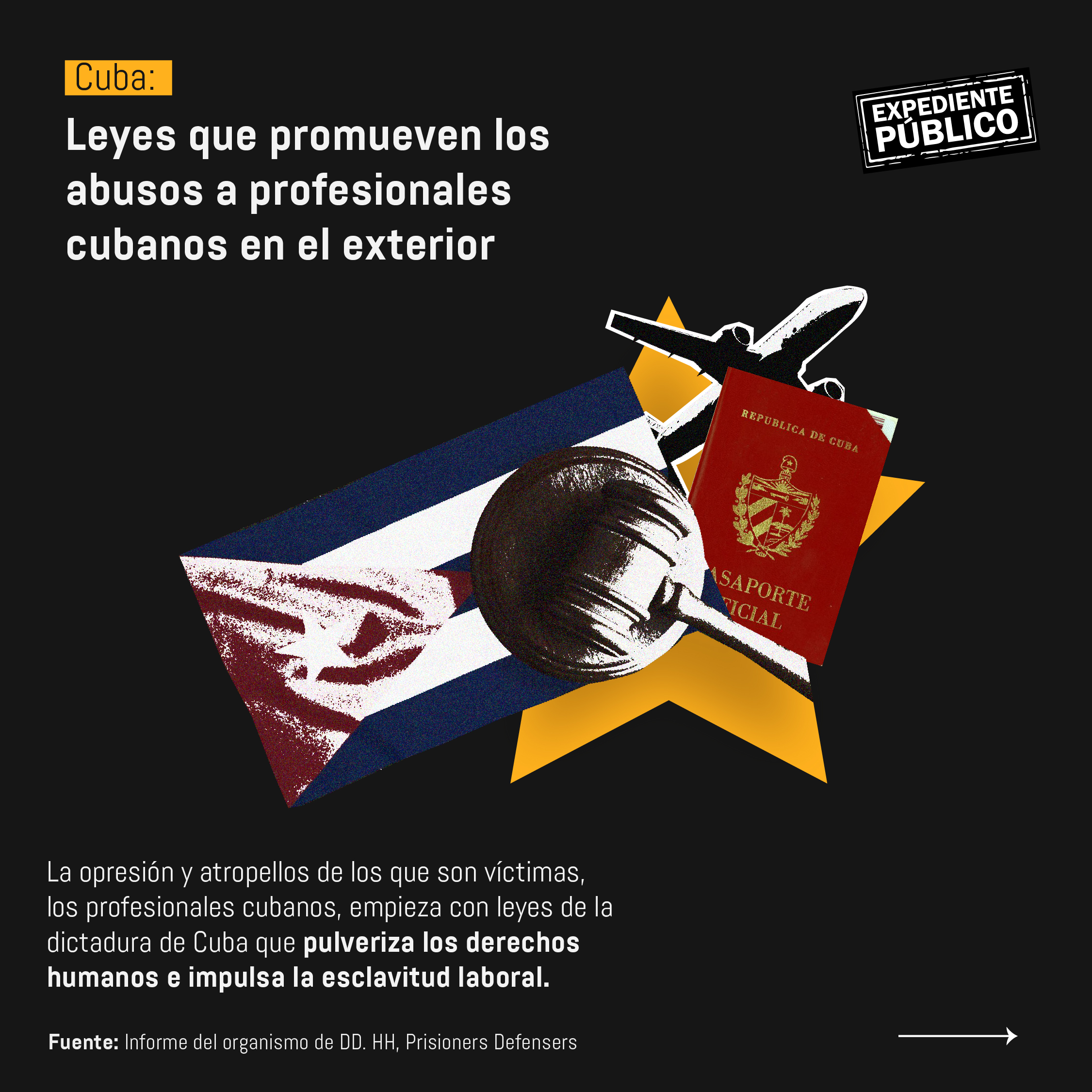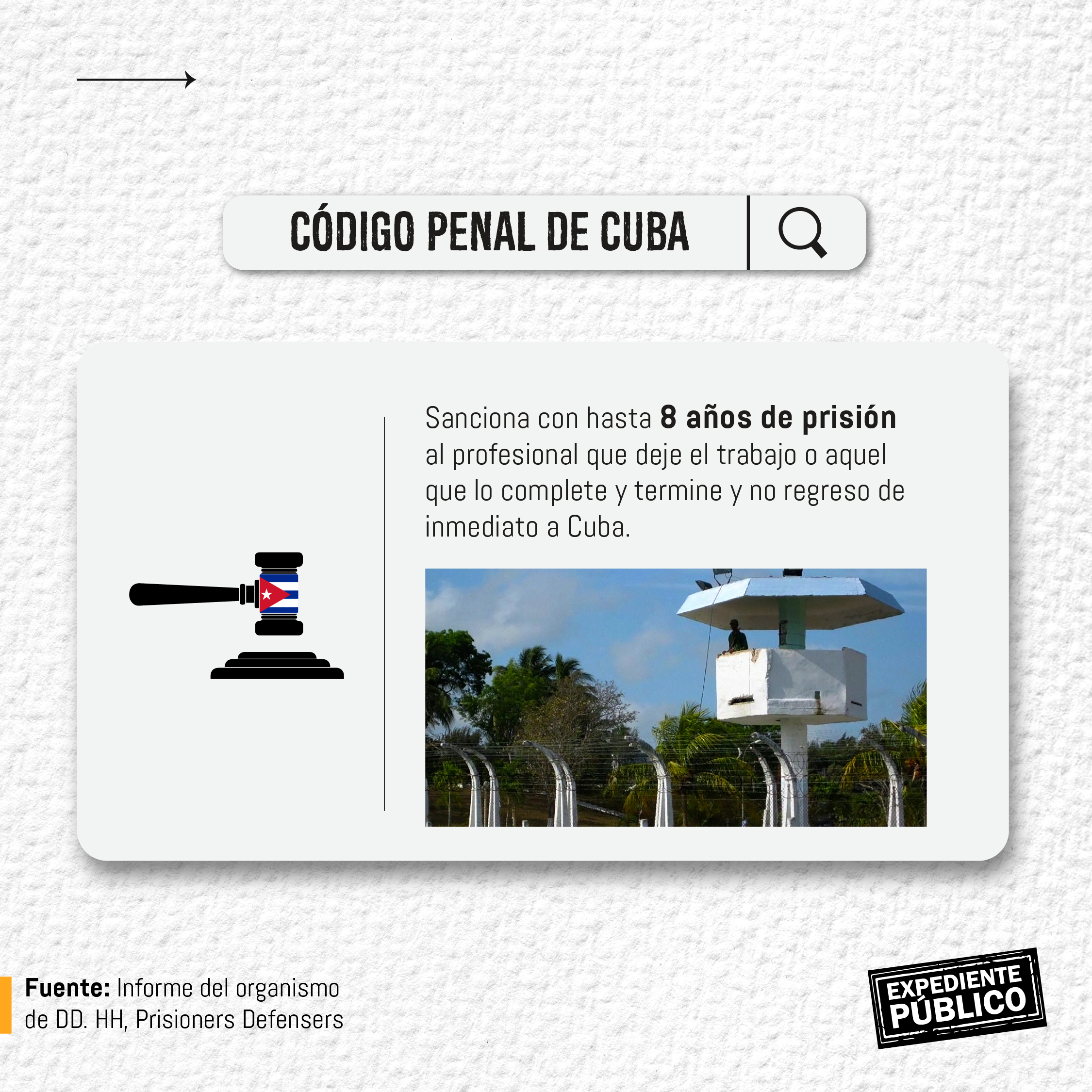 El Código Penal de Cuba dicta 8 años de prisión para el profesional que decida dejar de trabajar para esa empresa extranjera o si decide no regresar a Cuba tras terminar el trabajo.