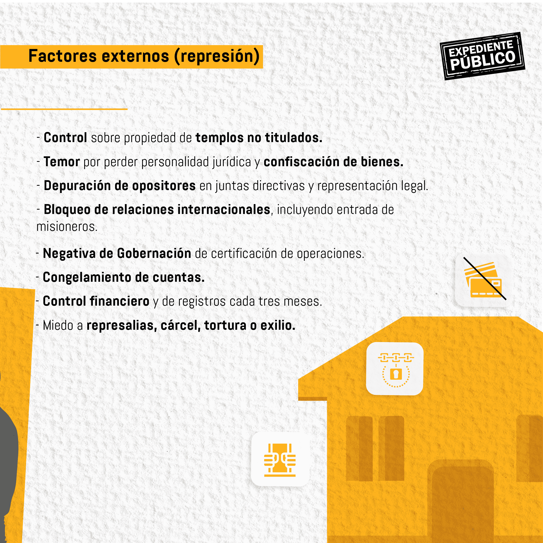 El presupuesto de 2020 para las denominaciones se redujo a 112 mil dólares, cuando en 2019 fue de 1.2 millones de dólares, según el portal noticiacristiana.com. Sobre la cantidad de ingresos en diezmos y ofrendas, las denominaciones son celosas y no las publican, pero Gobernación ejerce un control férreo sobre las finanzas.