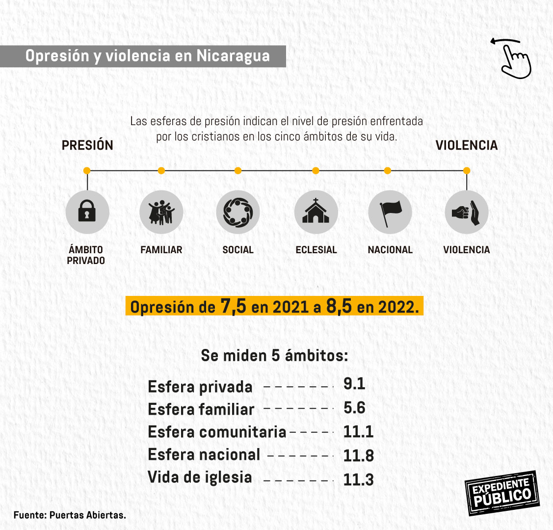 Teresa Flores, directora de Olire, un programa de libertad religiosa no confesional de la Fundación Plataforma para la Transformación Social, de Países Bajos, explicó que la persecución a la iglesia era el siguiente paso en la lógica del gobierno, que había cerrado medios y organizaciones civiles. La única institución que quedaba era la iglesia, como baluarte de libertad de expresión y denuncia.