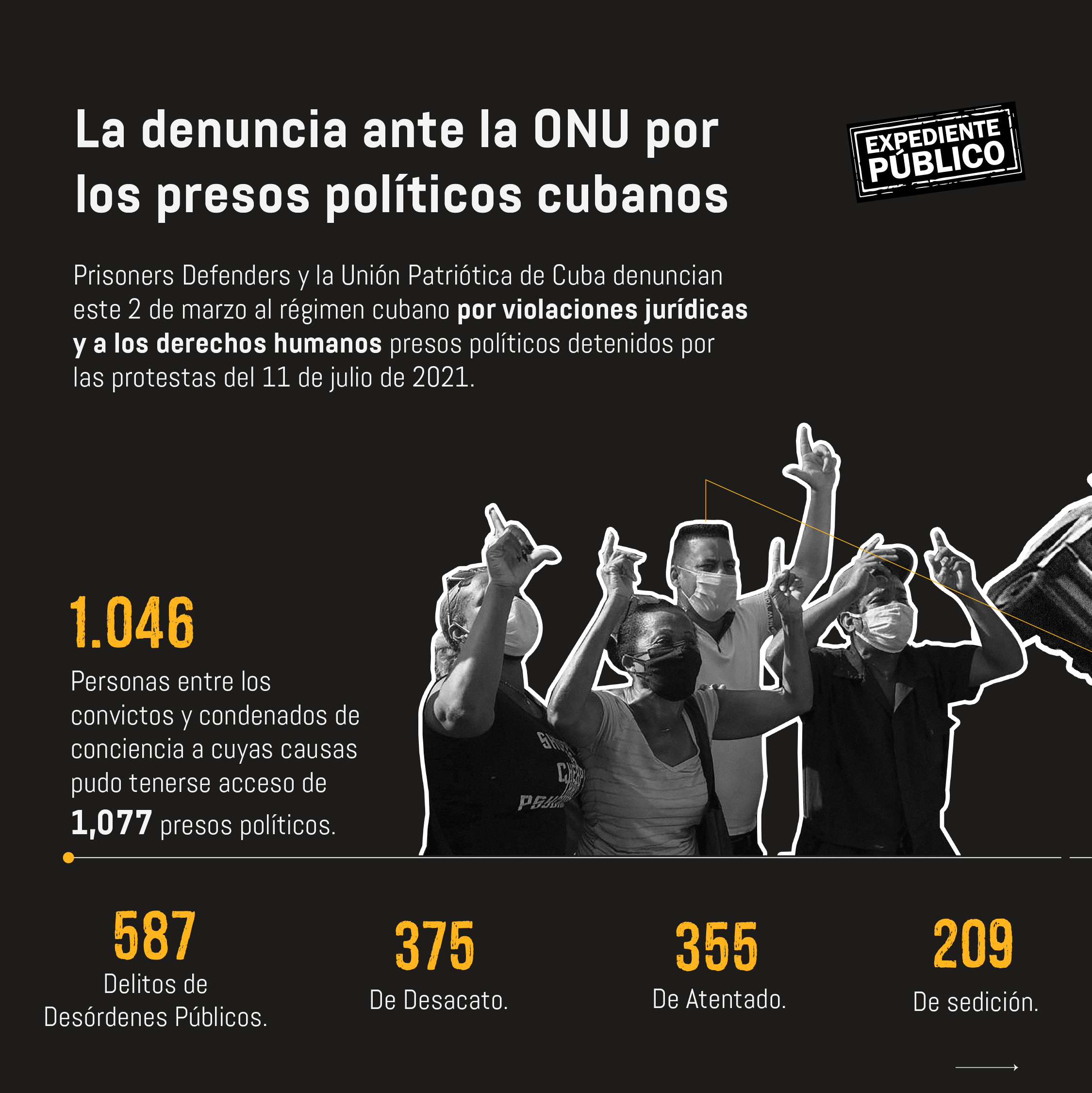 Según Prisoners Defenders, es la primera vez en la historia que una denuncia de tantos casos individuales se presenta en el Grupo de Trabajo para la Detención Arbitraria de Naciones Unidas, basada en 7 patrones de violación sistemática del debido proceso y la defensa efectiva de todo el sistema procesal en Cuba.