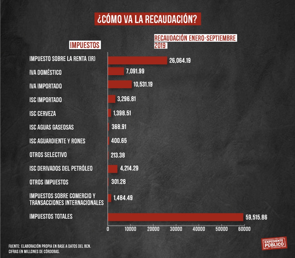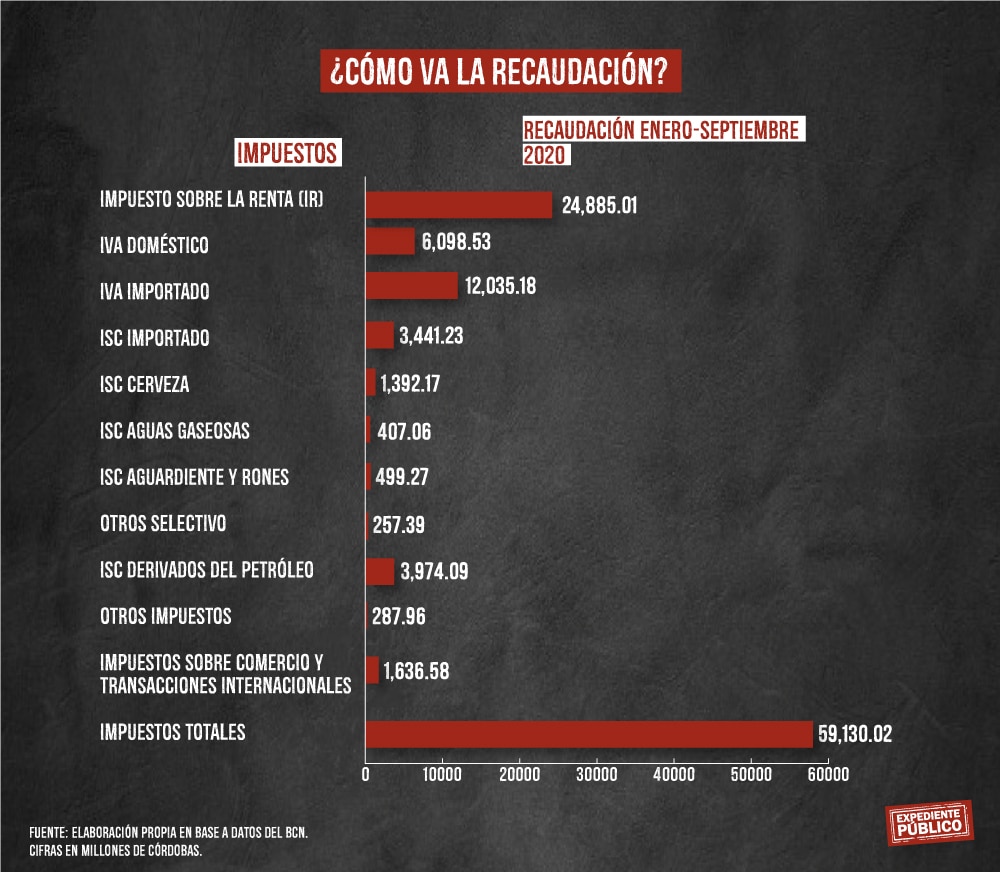 La meta era recaudar en ingresos totales C$ 79,199 millones (alrededor de US$2,189.7 millones) en el Presupuesto de 2020. Debido al impacto de la pandemia y la prolongación de la crisis política y social, los nuevos números de Hacienda son obtener C$ 75,982.10 millones (U$ 2,031.6 millones) en ingresos.