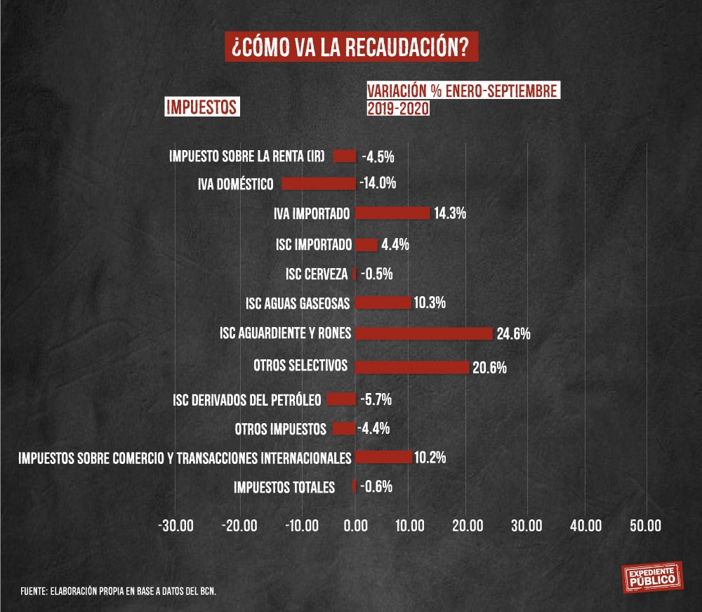 “La tendencia que lleva la recaudación es casi igual al comportamiento que tuvo en 2019. Mis cálculos son que la reducción será por el 6% por el efecto de la pandemia, que ha sido muy fuerte. Aún falta conocer la afectación de los meses de julio y agosto, cuando la economía se semiparalizó debido al pico de la pandemia, pero el mayor impacto se ha sentido en el Impuesto sobre la Renta que puede terminar cayendo el 9% o 10%”, afirmó Aráuz.