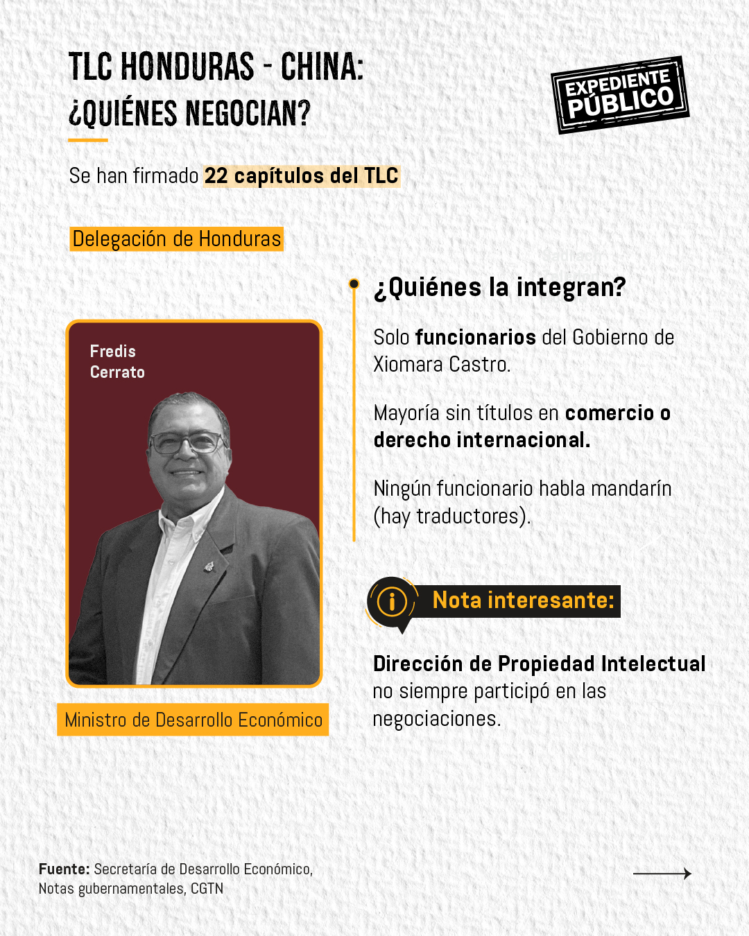 Fredis Cerrato solicitó en septiembre de 2023 declarar toda la información relacionada al TLC como reservada, el pleno de comisionados del Instituto Hondureño de Acceso a la Información Pública (IAIP) declaro con lugar la petición.