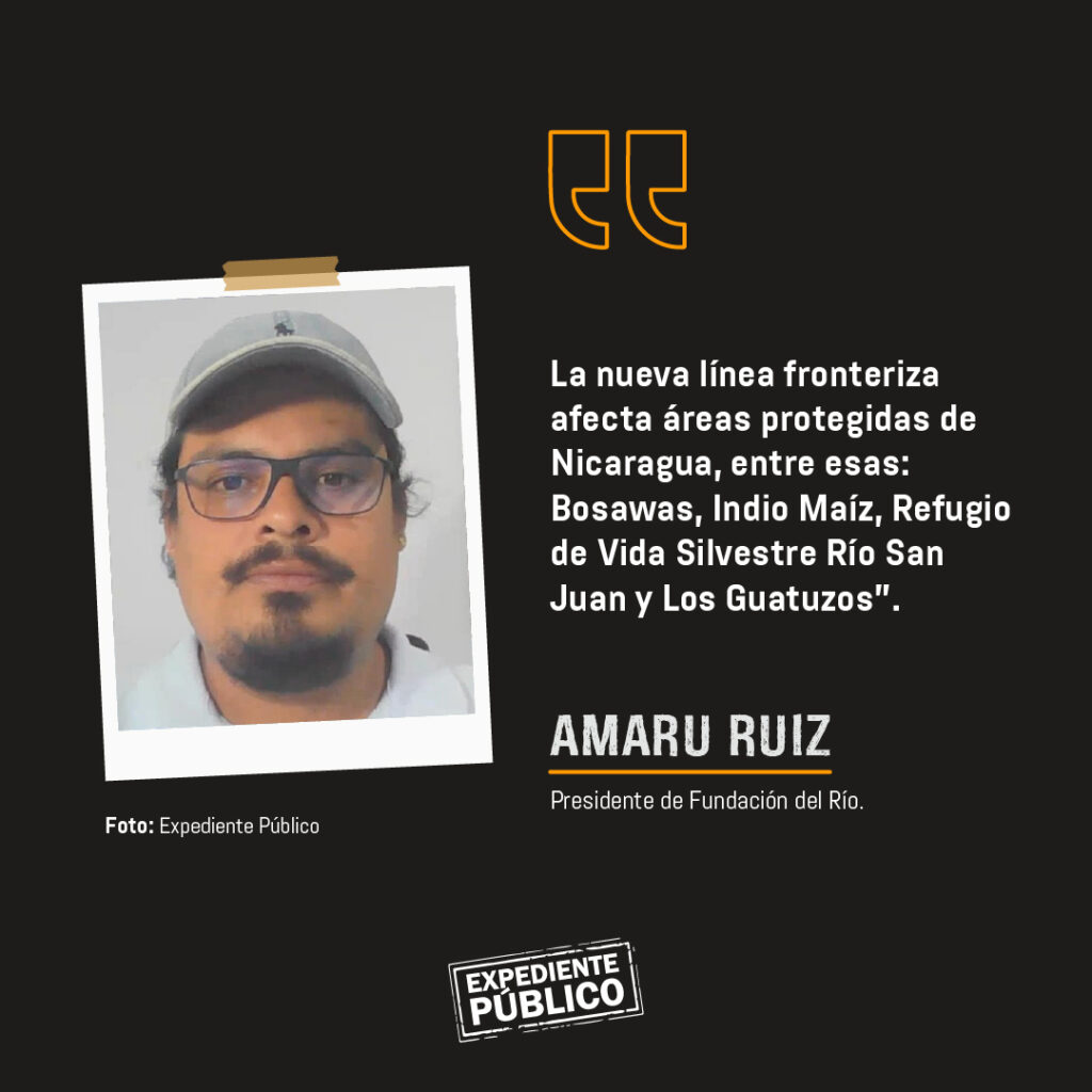 El ambientalista y biólogo Amaru Ruiz, de la Fundación del Río —una de las primeras organizaciones canceladas por la dictadura Ortega-Murillo en 2018—, en entrevista con Expediente Público, denunció que la nueva zona fronteriza se superpone con áreas protegidas.