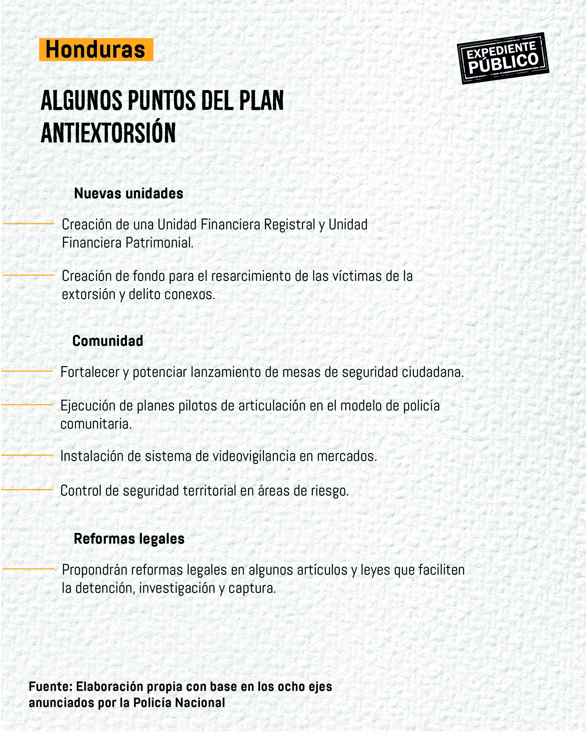 El plan contra la extorsión lanzado por el gobierno de Honduras repite varias medidas que ya se habían anunciado en administraciones anteriores, pero además, muestra una serie de debilidades que ponen en duda el logro de los resultados, en opinión de analistas consultados por Expediente Público.