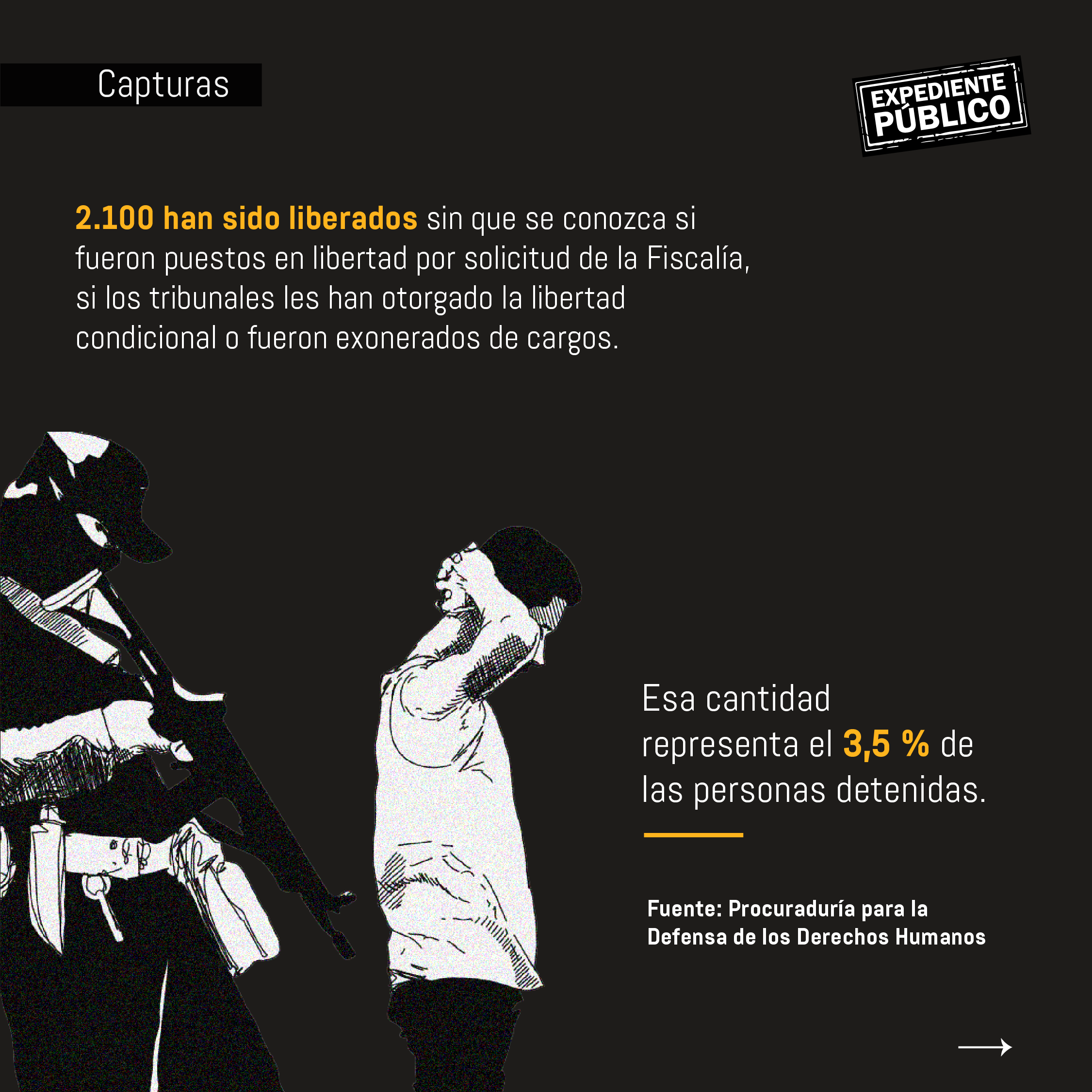A pesar de las capturas, desde hace dos meses se han liberado 2,100 detenidos de ambos sexos sin que se conozca mayor información oficial al respecto. Por ejemplo, se desconoce si fueron puestos en libertad porque los juzgados les otorgaron la libertad condicional o fueron exonerados de cargos, o por solicitud de la Fiscalía General de la República (FGR).