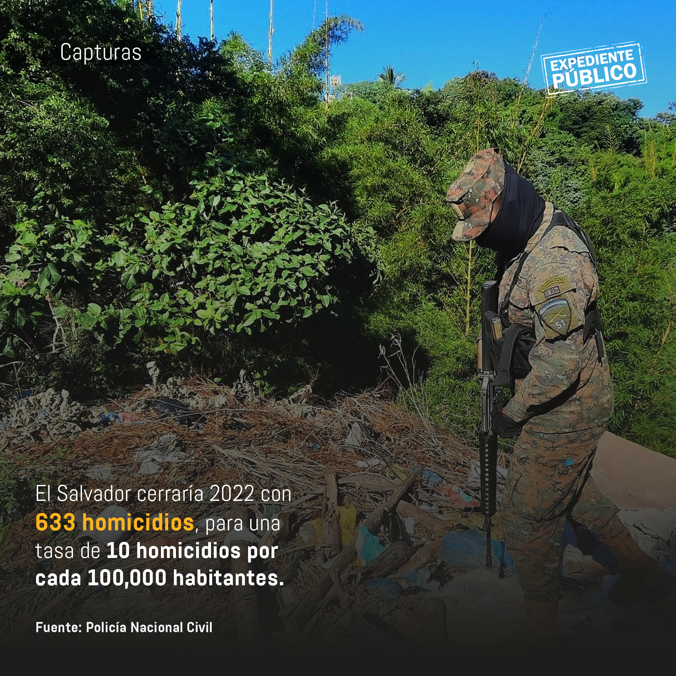 Conforme las previsiones oficiales, El Salvador cerrará 2022 con 633 homicidios que equivale a una tasa de 10 homicidios por cada 100,000 habitantes.