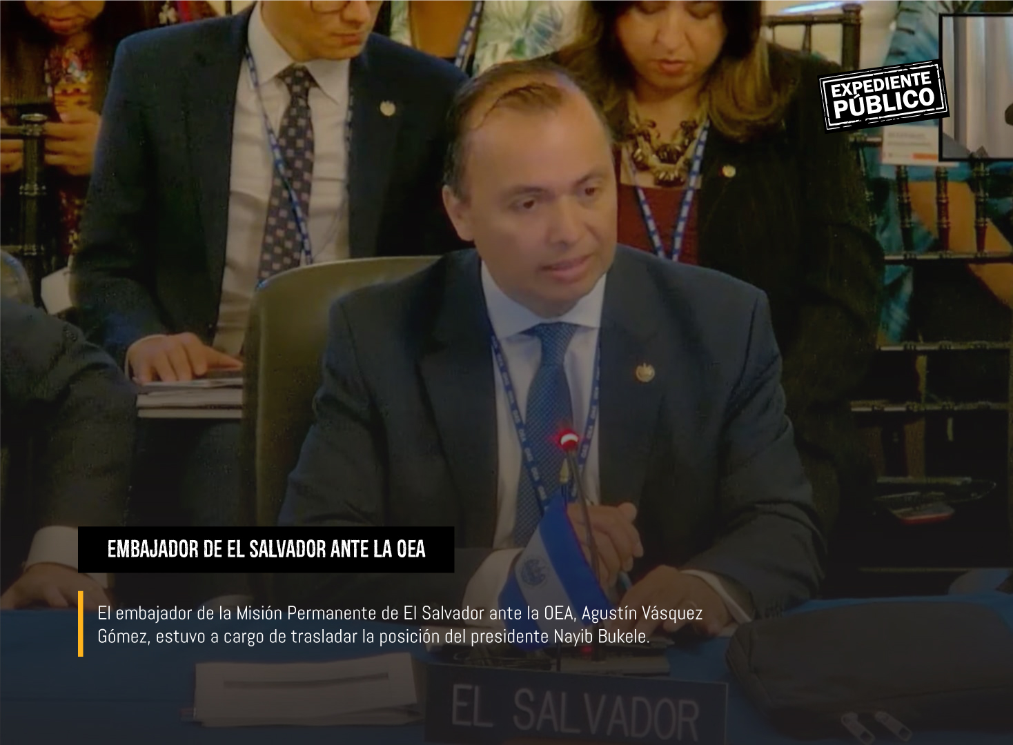 Al concluir su participación, el diplomático salvadoreño fue abordado por Expediente Público para ampliar sobre la posición que ofrece la administración Bukele ante el foro interamericano.