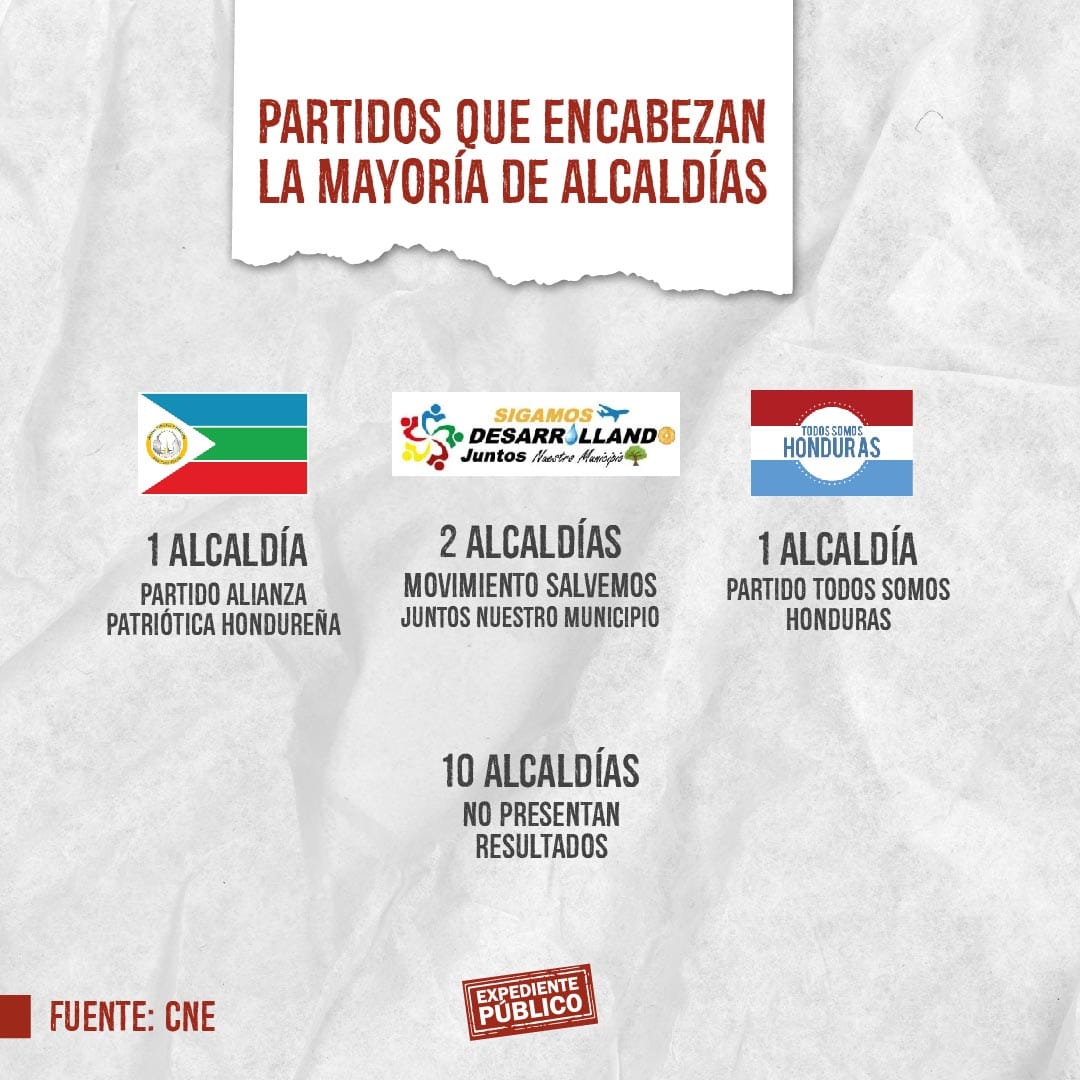 En tanto el partido Libertad y Refundación, Libre, además de ganar la Presidencias se quedaría con 57 municipalidades. Libre tendría 26 alcaldes más incluidos los de Tegucigalpa y San Pedro Sula.