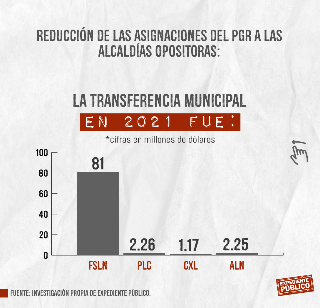 **El régimen incrementó para 2022 sus asignaciones presupuestarias para las municipalidades sandinistas en 12%, mientras que el incremento en las alcaldías opositoras fue cero.