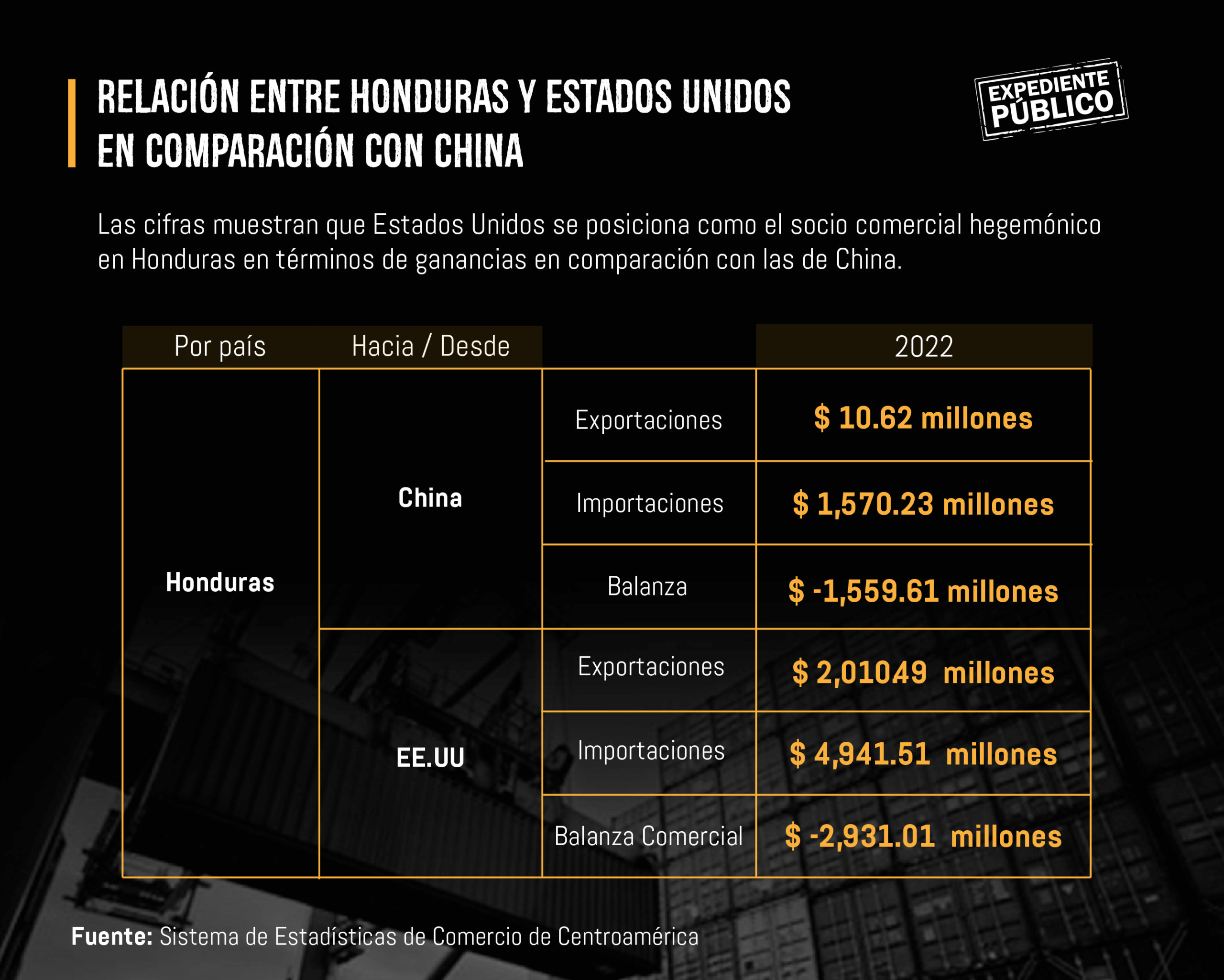 En cambio, con China apenas se alcanzaron $10.62 millones de exportaciones y $1,570.23 millones de importaciones.