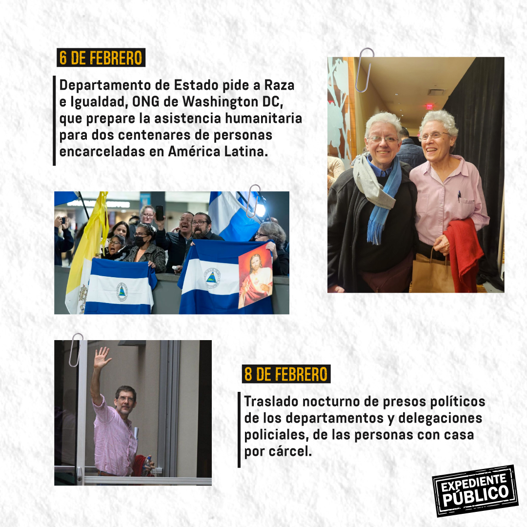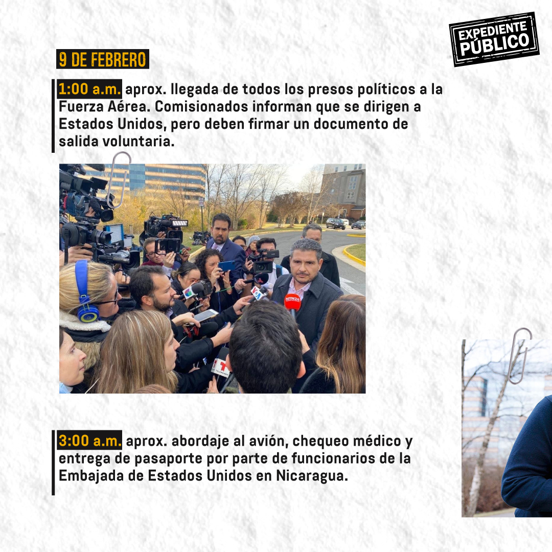 El 9 de febrero 222 presos políticos fueron liberados de diferentes cárceles de Nicaragua y desterrados a Estados Unidos, en una sorpresiva operación en la que Estados Unidos facilitó el traslado y seguridad de los nicaragüenses.