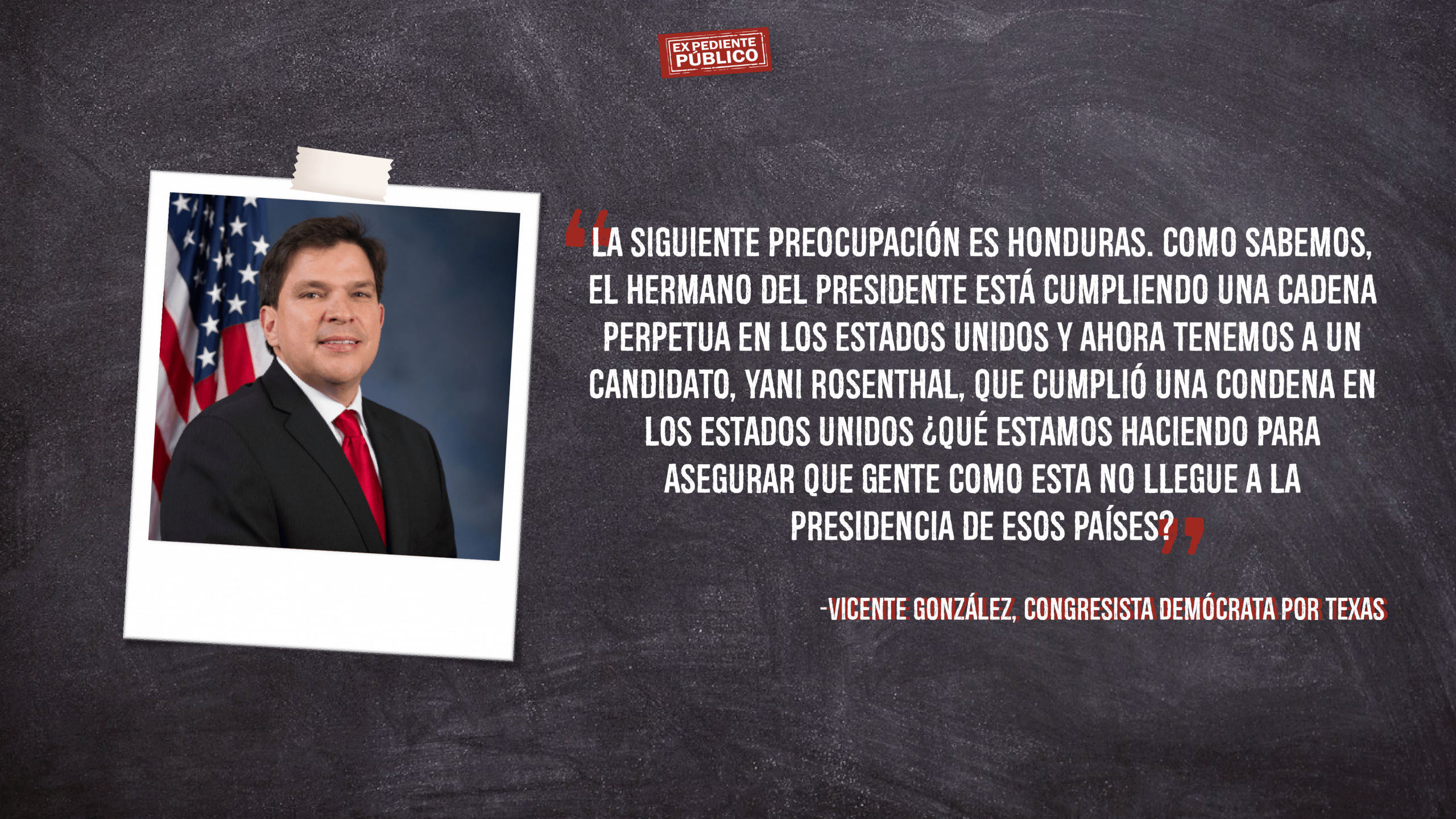 Pero las preocupaciones por un Yani Rosenthal presidente no se dan solo en Honduras, el congresista por Texas, Vicente González, en una comparecencia pública del enviado especial para el Triángulo Norte, Ricardo Zúñiga, le preguntó qué estaban haciendo para evitar que “gente como esta” se conviertan en presidente de Honduras.