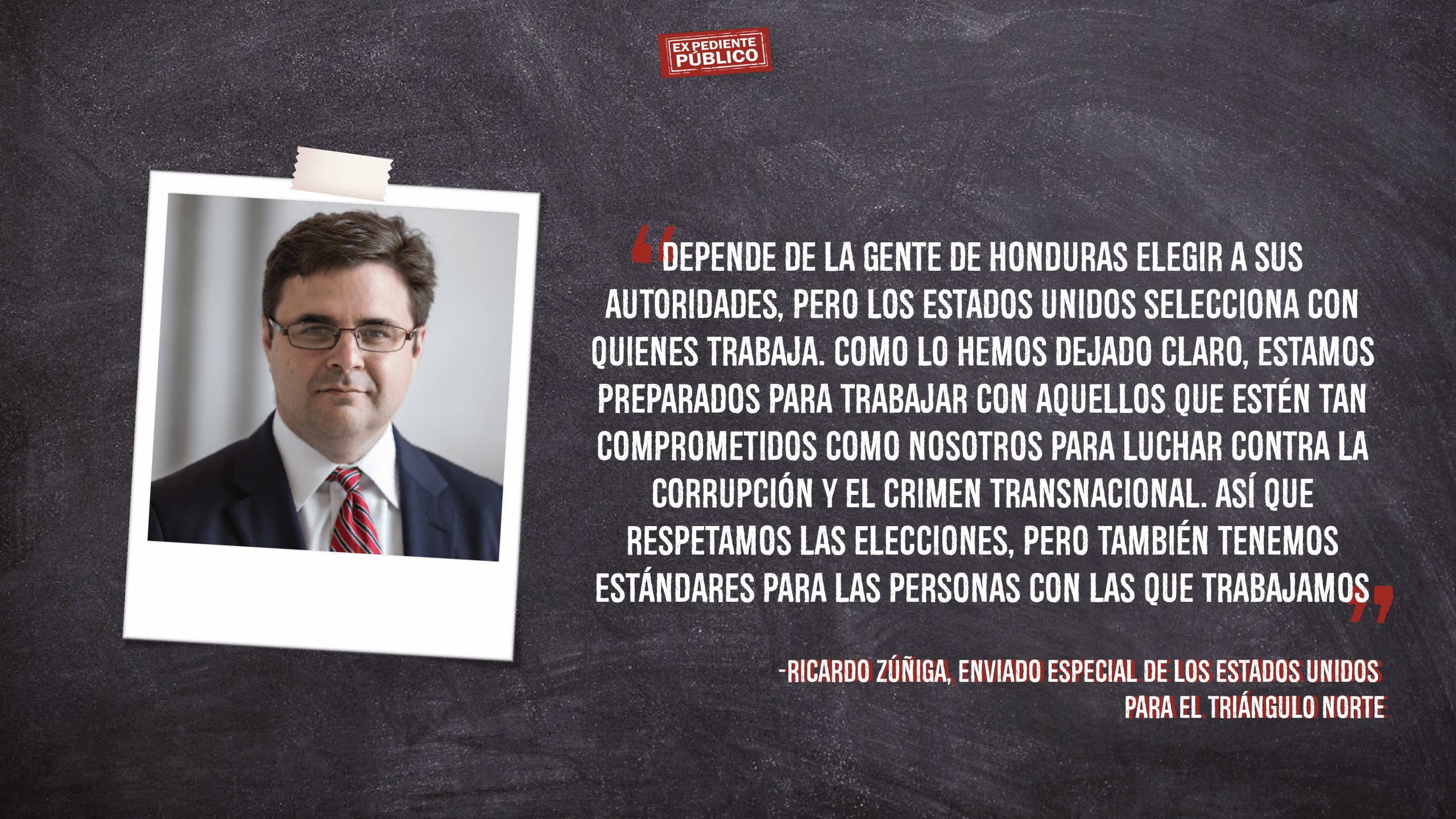 En una respuesta diplomática, Zúñiga contestó que era decisión de los hondureños escoger sus autoridades, pero que Estados Unidos tiene claros los “estándares” de las personas con las que están dispuestos a trabajar, es decir, quienes están comprometidos a luchar contra la corrupción y el crimen transnacional.