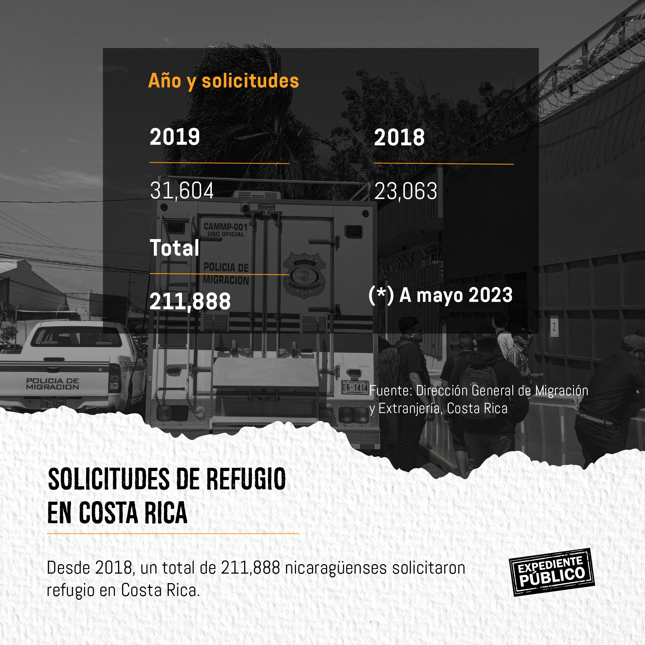 De 2018 a mayor de este año, según cifras oficiales, un total de 211,888 nicaragüenses hicieron el trámite de refugio en Costa Rica.