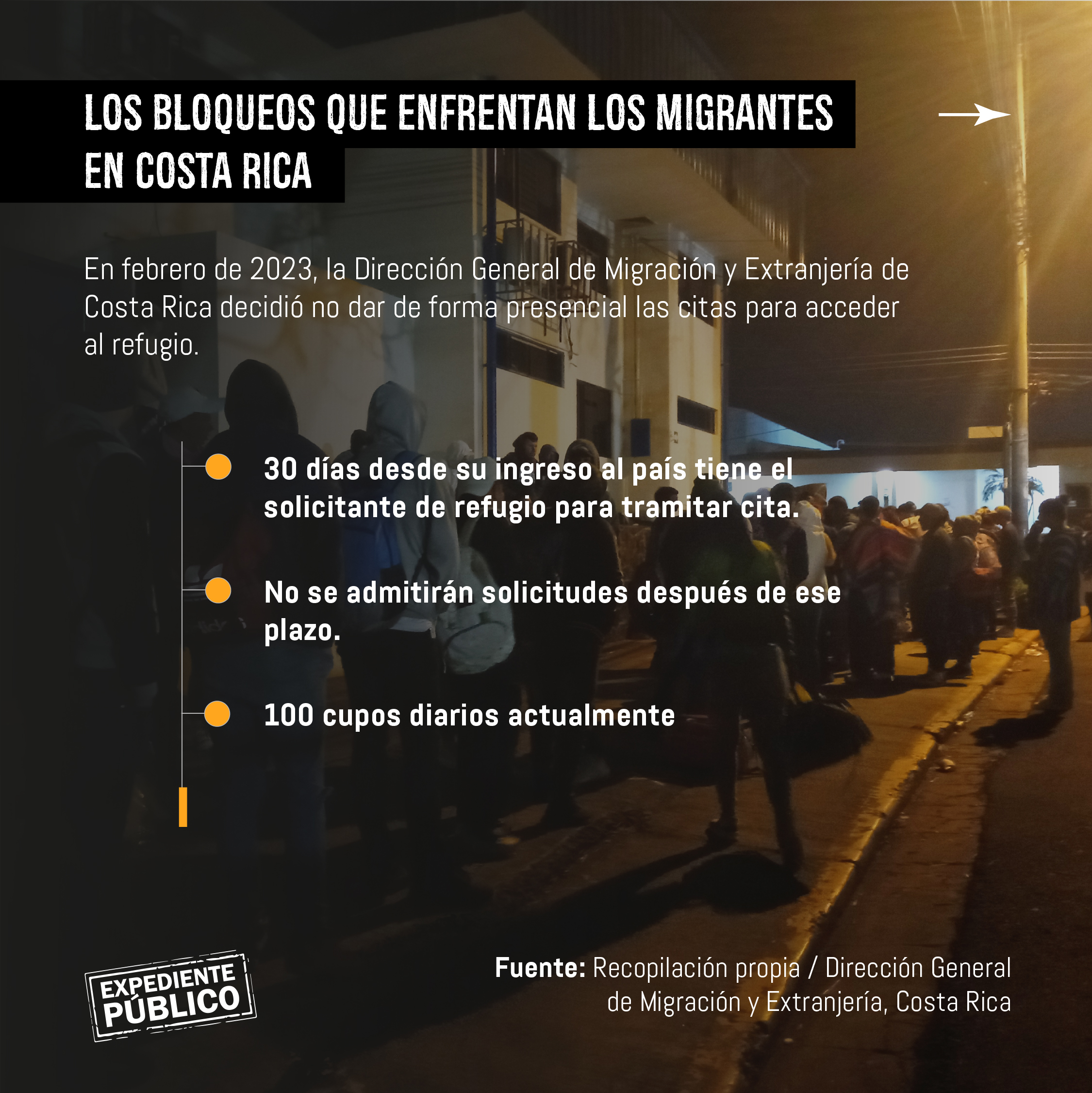 En noviembre de 2022, el Ejecutivo de Costa Rica emitió una serie de decretos que estableció que toda nueva solicitud de protección internacional debe ser presentada dentro de un mes natural a partir del día de su ingreso al país. Hasta febrero de este año, el solicitante debía presentarse personalmente.