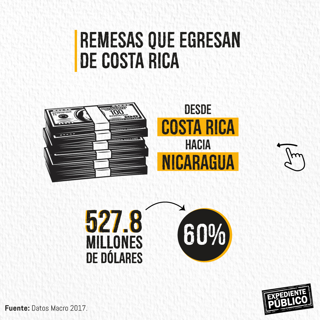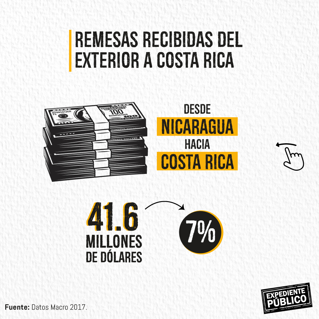 En Costa Rica, el beneficio de los migrantes también es notable, el país recibió un monto de 41.6 millones de dólares por parte de familias de nicaragüenses.