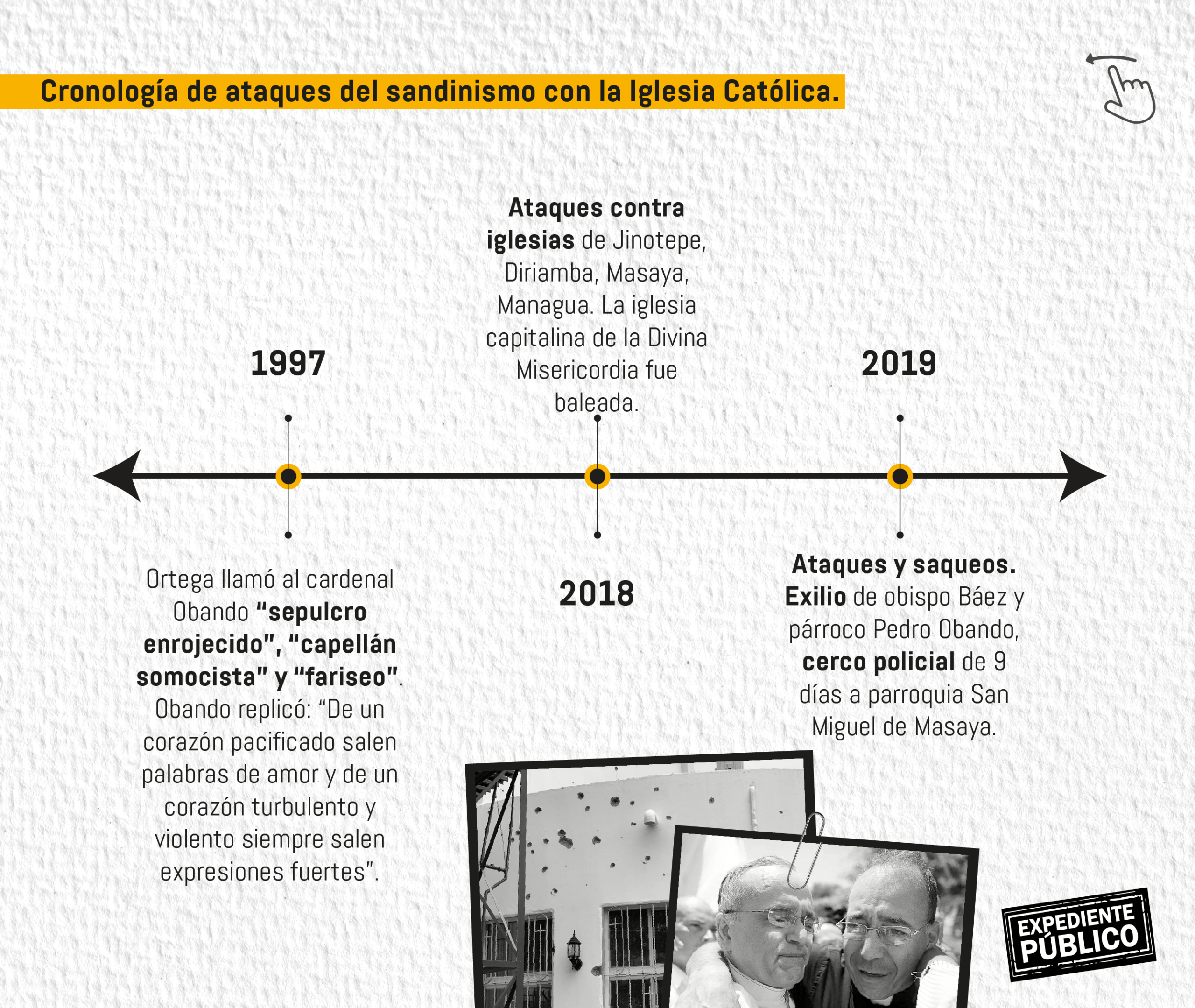 *Ni siquiera en la década de los 80, mientras estaba en guerra, el FSLN había disparado contra templos, bloqueado parroquias y apresado a sacerdotes.