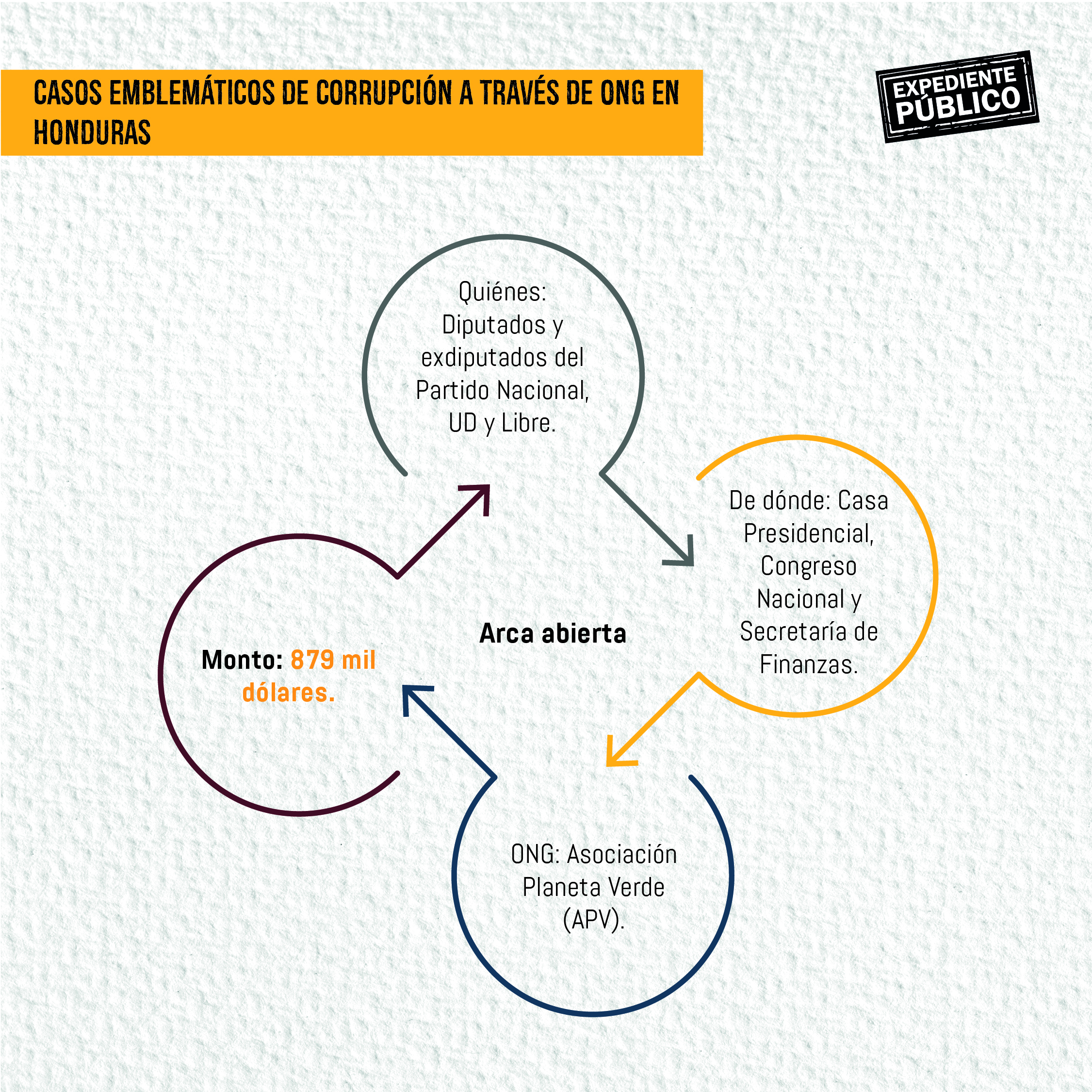 El saqueo a través de ONG´s repite un modus operandi que también funcionó en otros países como Colombia y Guatemala, “son como réplicas que se dan de personas que pasan inventando cómo drenar el dinero del Estado”, dijo a Expediente Público el jefe de la Unidad Fiscal Especializada contra Redes de Corrupción (Uferco), Luis Javier Santos.