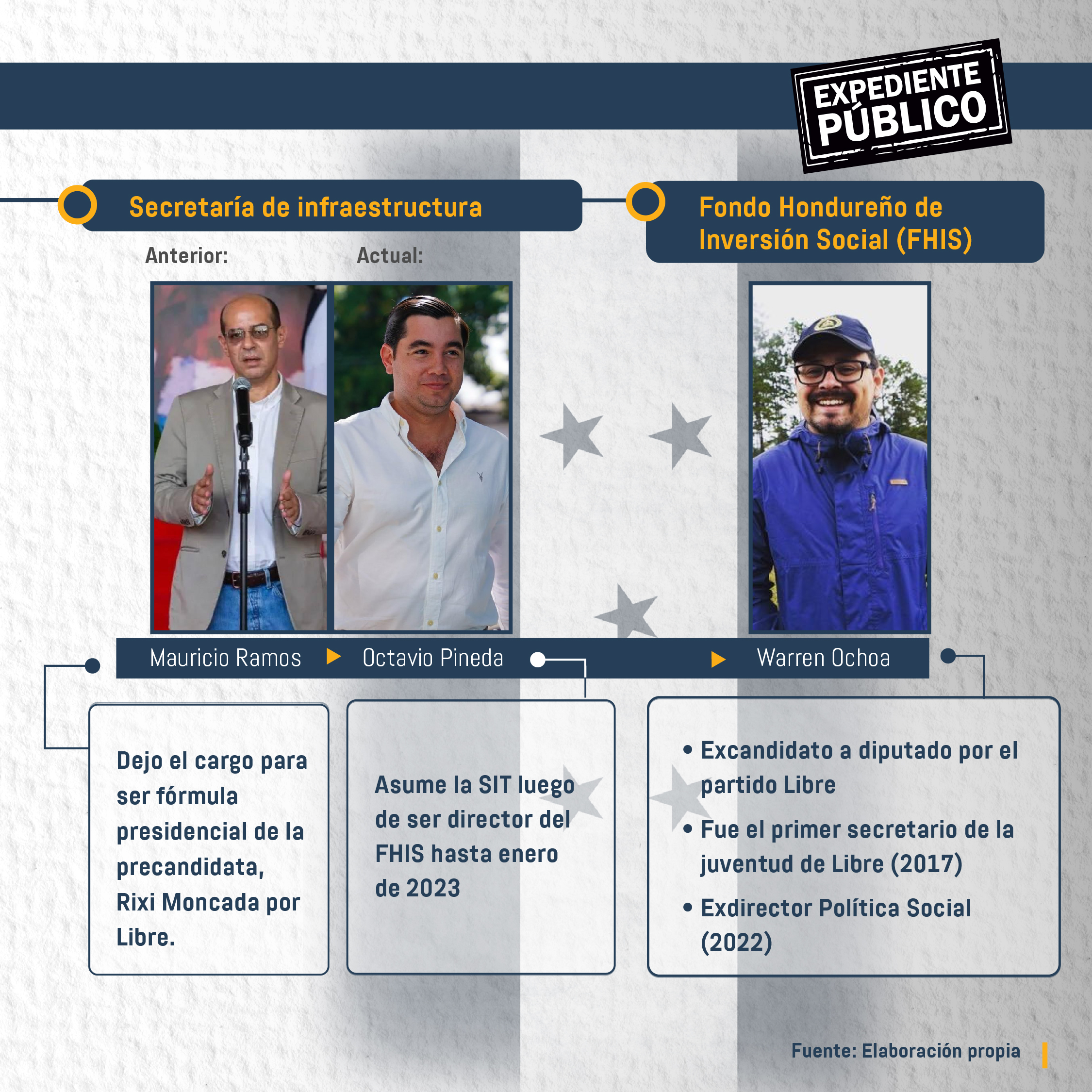 Octavio Pineda quien se encontraba frente al Fondo Hondureño de Inversión Social (FHIS) fue removido o ascendido a dirigir la Secretaría de Infraestructura y Transporte (SIT) sustituyendo a Mauricio Ramos.