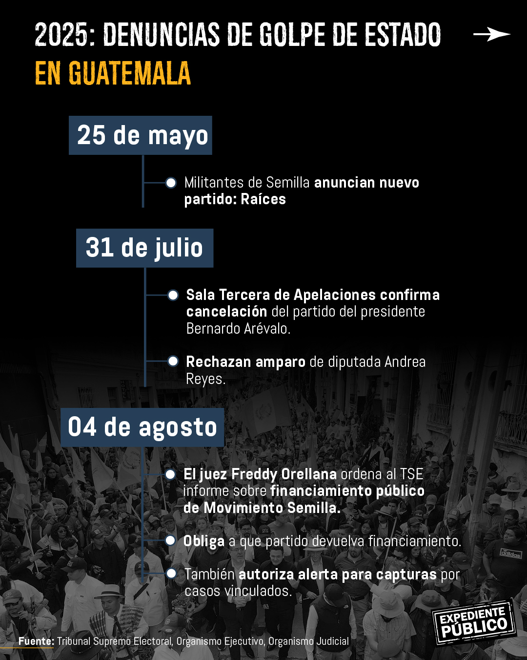 Mientras tanto, los diputados de Semilla solicitaron un amparo a la Corte de Constitucionalidad (CC) para que deje sin efecto lo actuado por Orella y les garantice sus cargos. La CC no tiene un plazo para conocer la solicitud ni para resolverla.