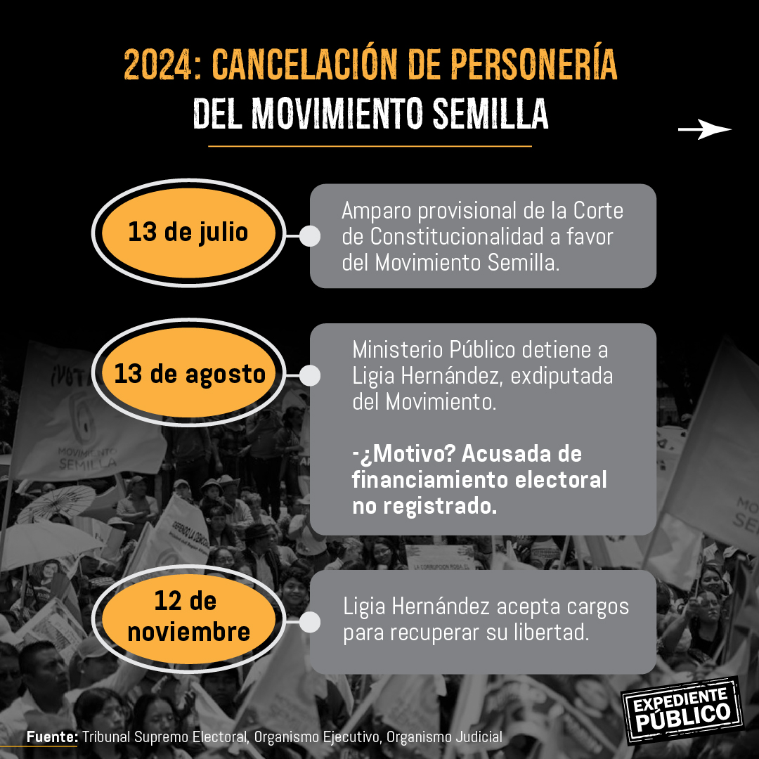 La crisis se intensificó con la captura de Ligia Hernández, integrante del partido, ocurrida el 13 de agosto de 2024, señalada en el caso denominado “Corrupción Semilla”. Desde entonces, la agrupación política ha enfrentado un constante acoso judicial, según denuncias del propio mandatario y organizaciones internacionales.