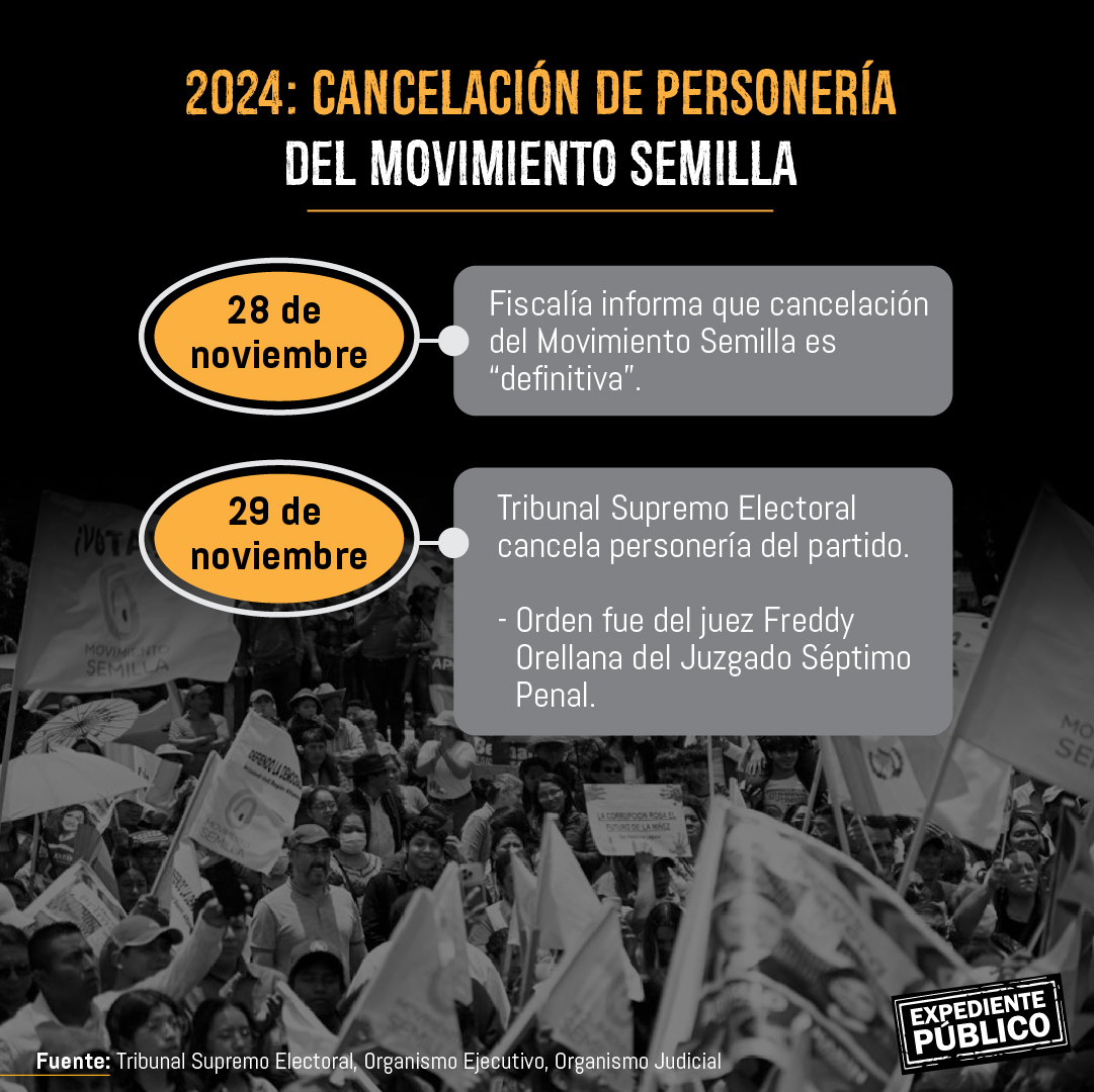La decisión incluyó oficios dirigidos al Registro de Ciudadanos del Tribunal Supremo Electoral (TSE) y al Congreso de la República, en los que el juez ordena desconocer a los funcionarios electos bajo la bandera de Semilla, incluyendo al Presidente de la República, la vicepresidenta Karin Herrera, diputados y autoridades municipales.