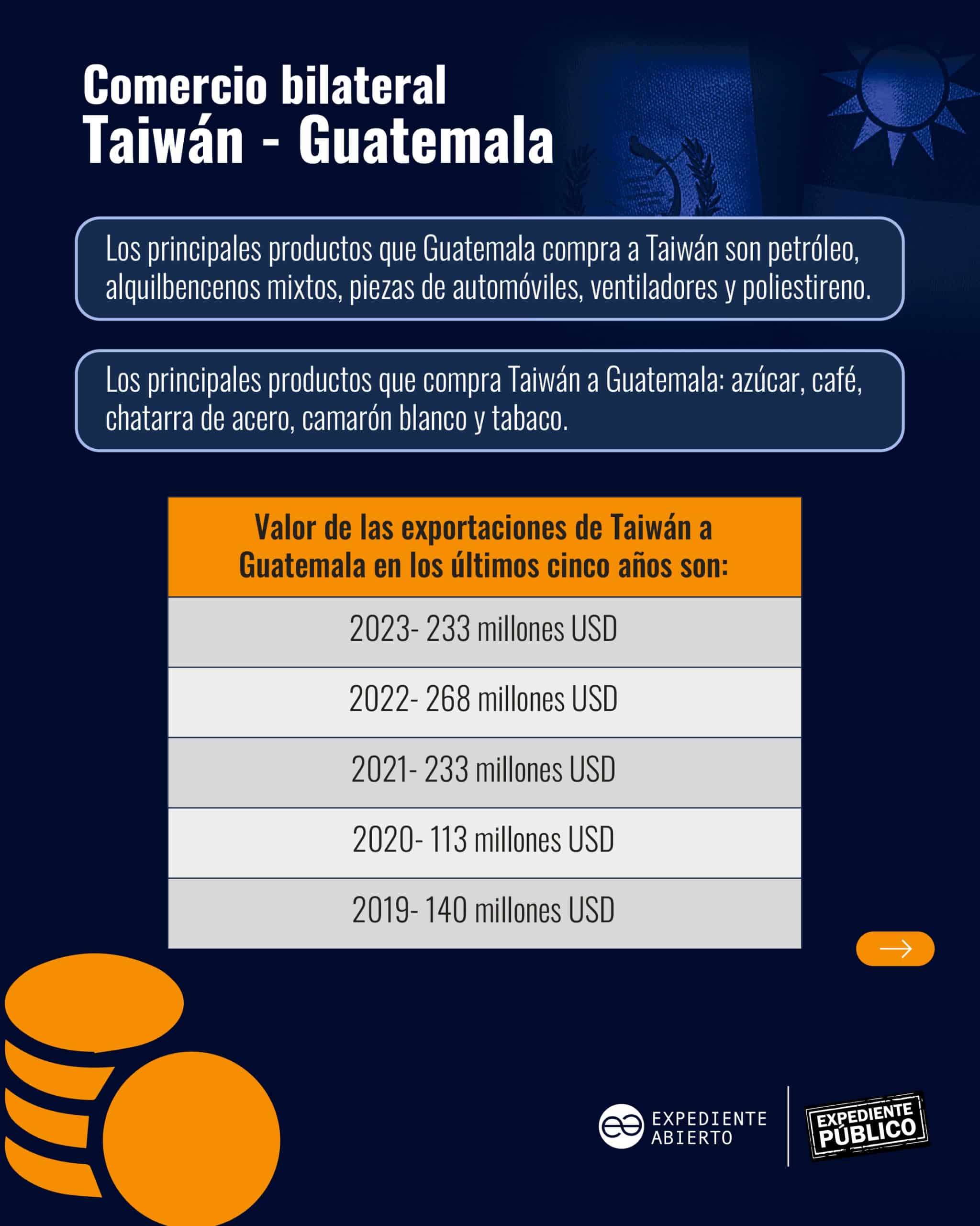 Tan solo en 2023 el valor de las exportaciones de Taiwán a Guatemala fue de $233 millones.