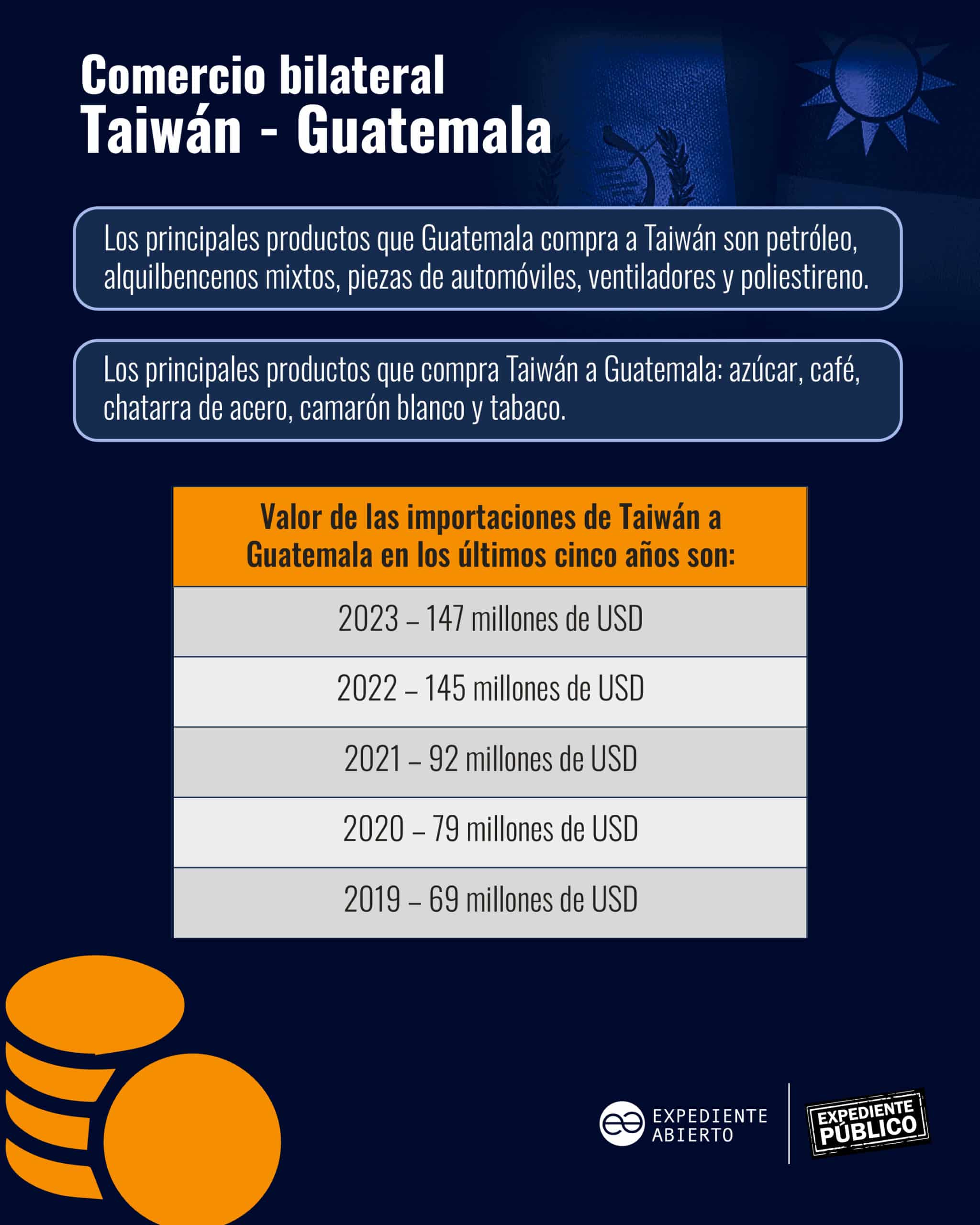 Sin embargo, a pesar de las relaciones de carácter económico y comercial con la República de China, “creo que Guatemala va a seguir jugando a dos bandas, por un lado, desde lo político y diplomático, y por el otro comercial”, indicó.