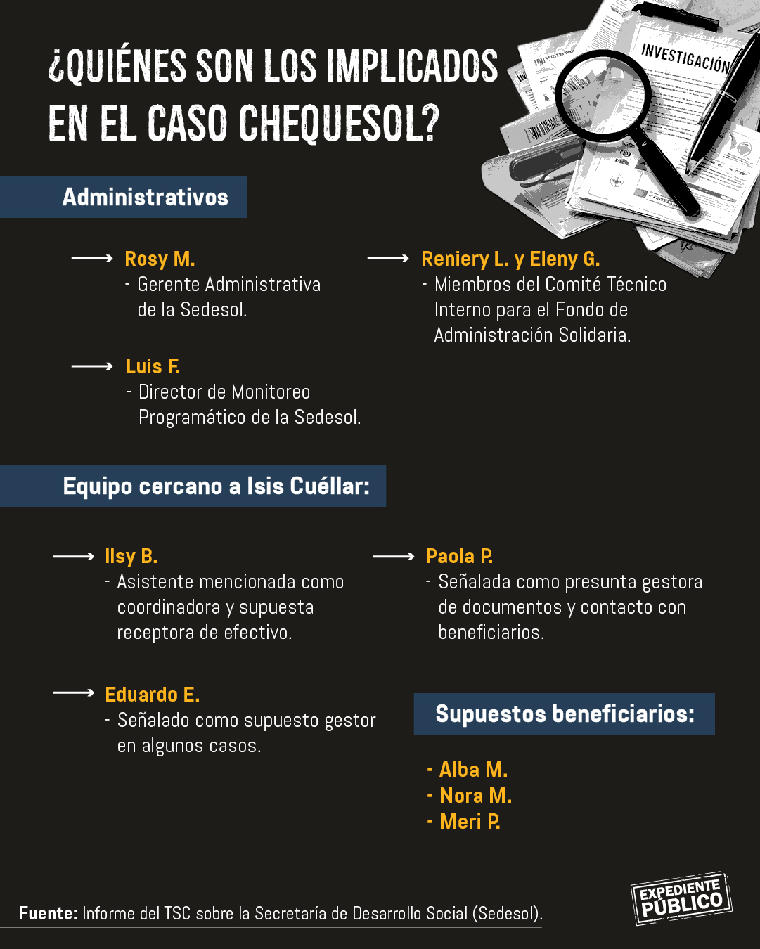 Otros funcionarios de la Sedesol procesados penalmente son Luis F., Eleny G. y Reniery S.